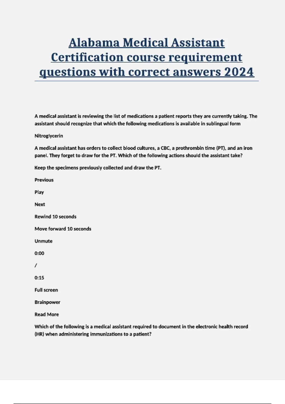 Alabama Medical Assistant Certification course requirement questions with correct answers 2024