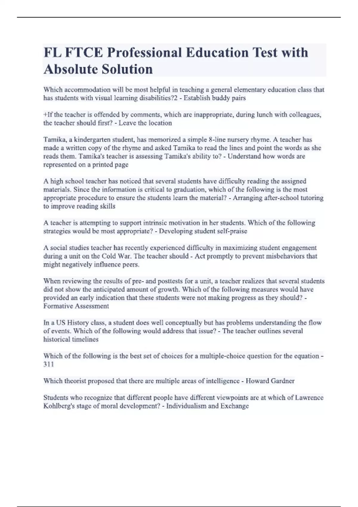 FL FTCE Professional Education Test with Absolute SolutionFL FTCE Professional Education Test with Absolute SolutionFL FTCE Professional Education Test with Absolute SolutionFL FTCE Professional Education Test with Absolute SolutionFL FTCE Professional Education Test with Absolute Solution