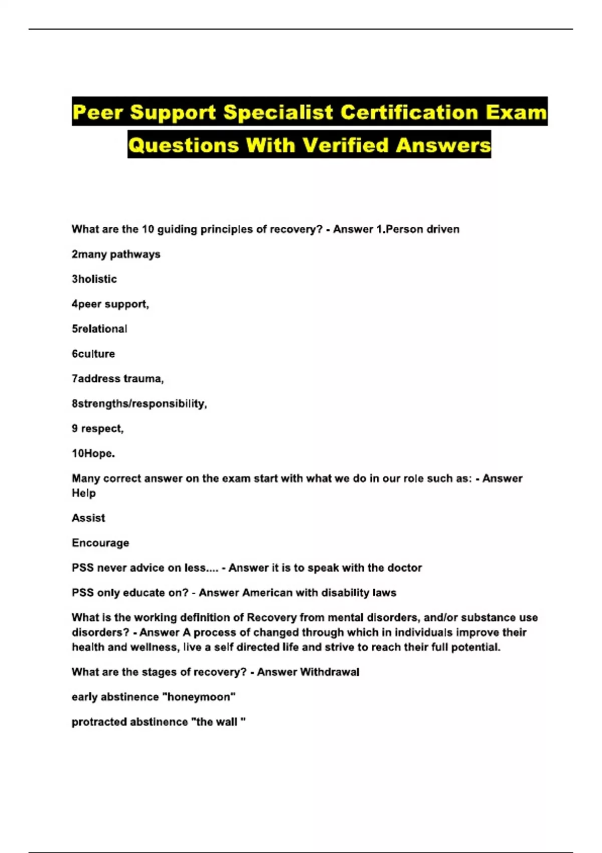 Peer Support Specialist Certification Exam Questions With Verified AnswersPeer Support Specialist Certification Exam Questions With Verified AnswersPeer Support Specialist Certification Exam Questions With Verified AnswersPeer Support Specialist Certification Exam Questions With Verified Answers
