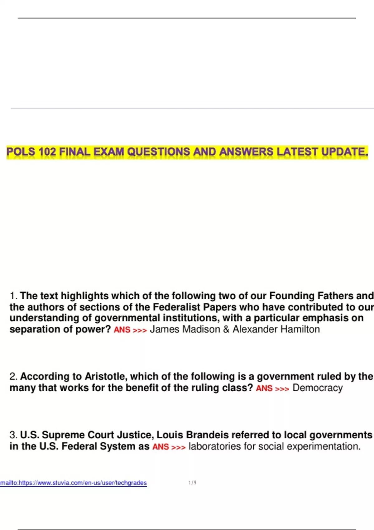 POLS 102 FINAL EXAM QUESTIONS AND ANSWERS LATEST UPDATE.
