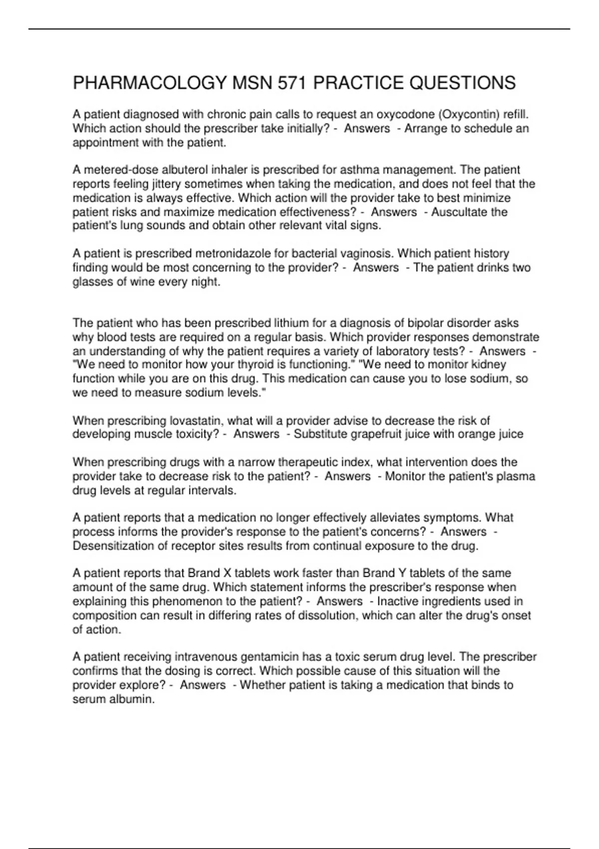 PHARMACOLOGY MSN 571 PRACTICE QUESTIONS