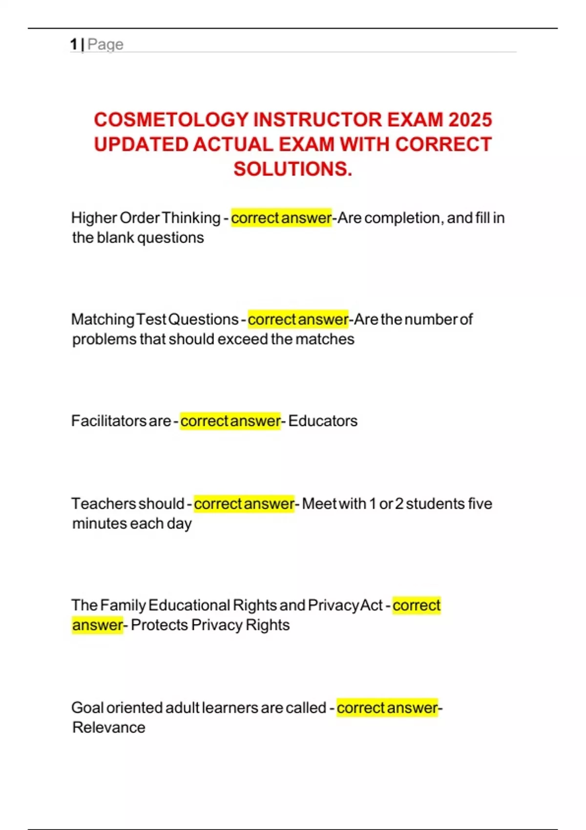 COSMETOLOGY INSTRUCTOR EXAM 2025