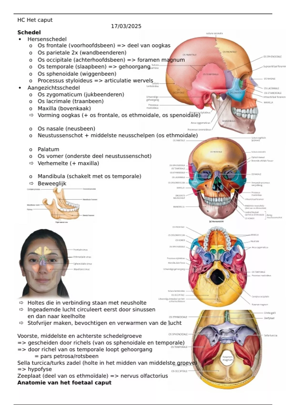 Samenvatting van 3 pagina's voor het vak 1VRK aan de PXL (Het caput)