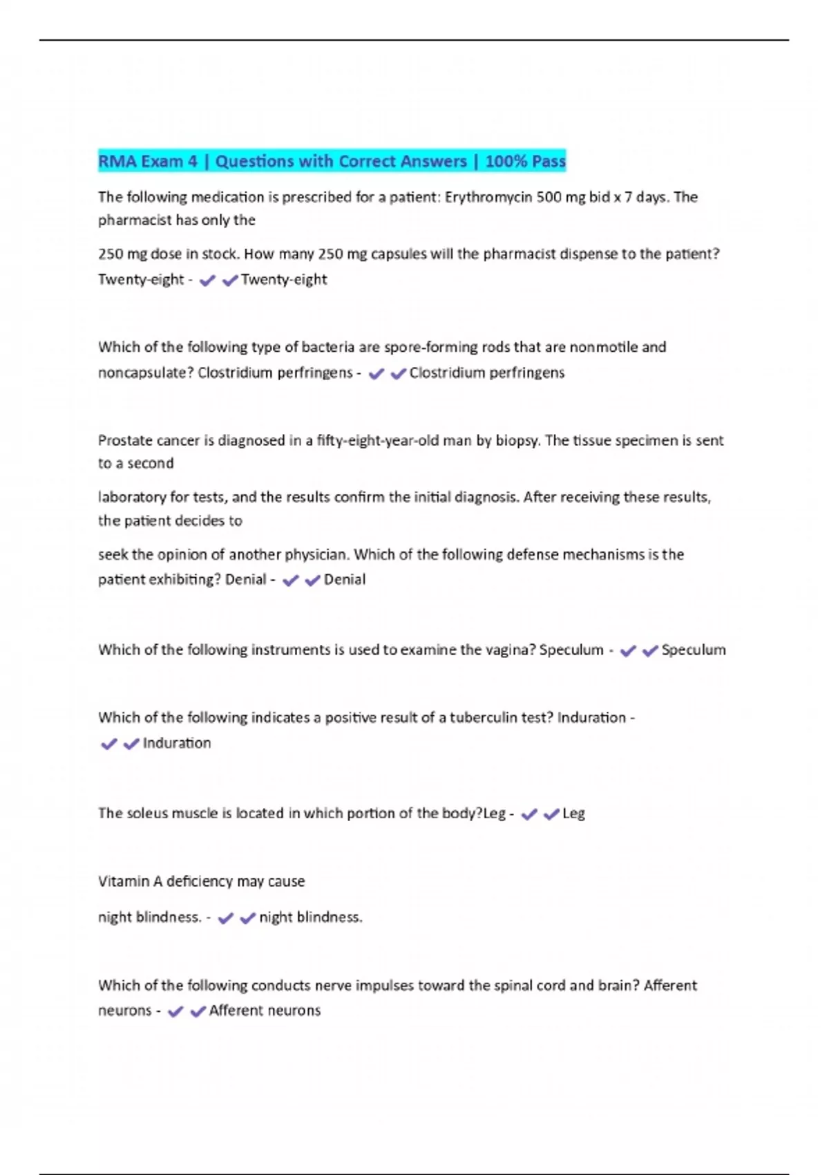 RMA Exam 4 | Questions with Correct Answers | 100% Pass