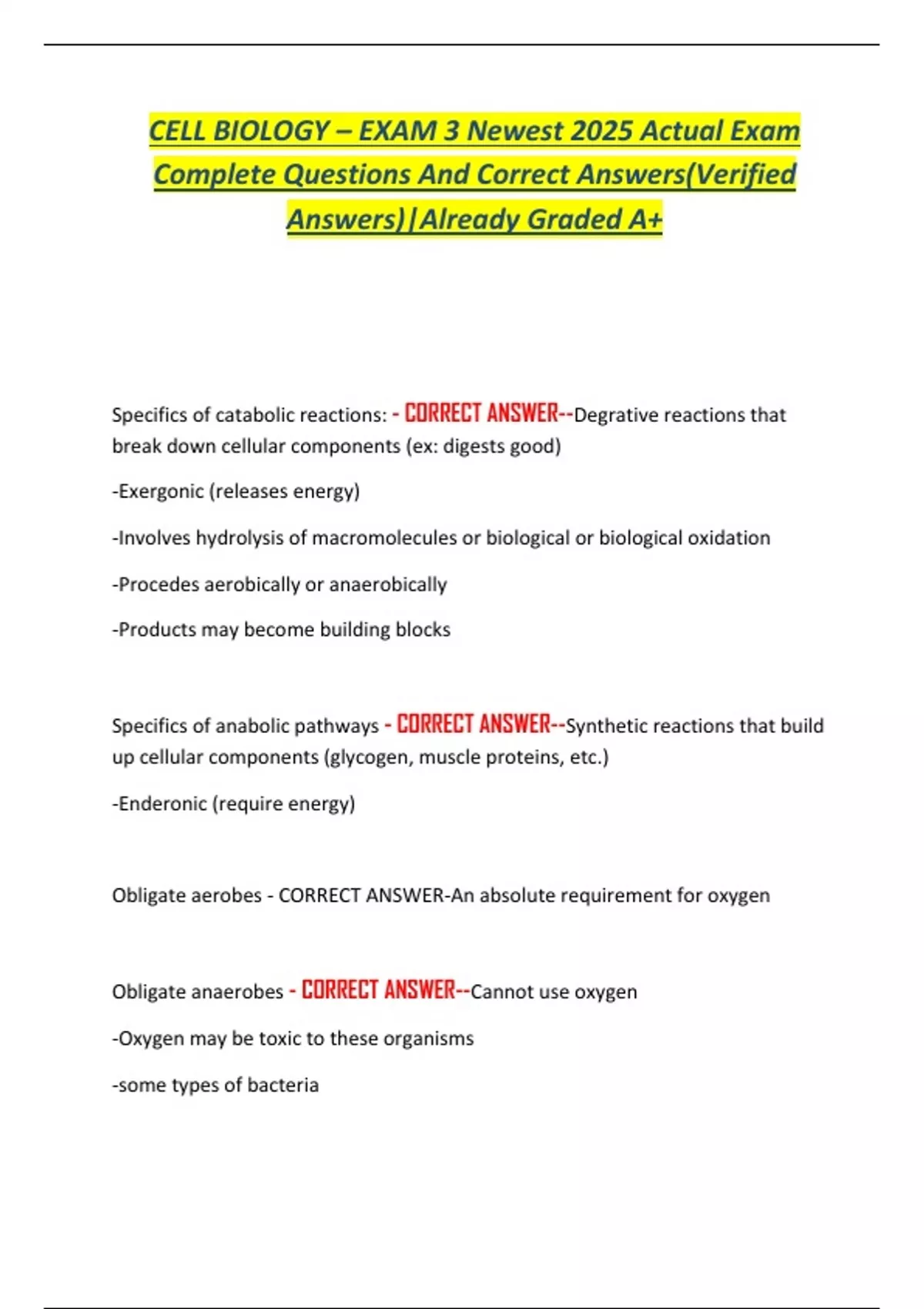 CELL BIOLOGY – EXAM 3 Newest 2025 Actual Exam Complete Questions And Correct Answers(Verified Answers)|Already Graded A+