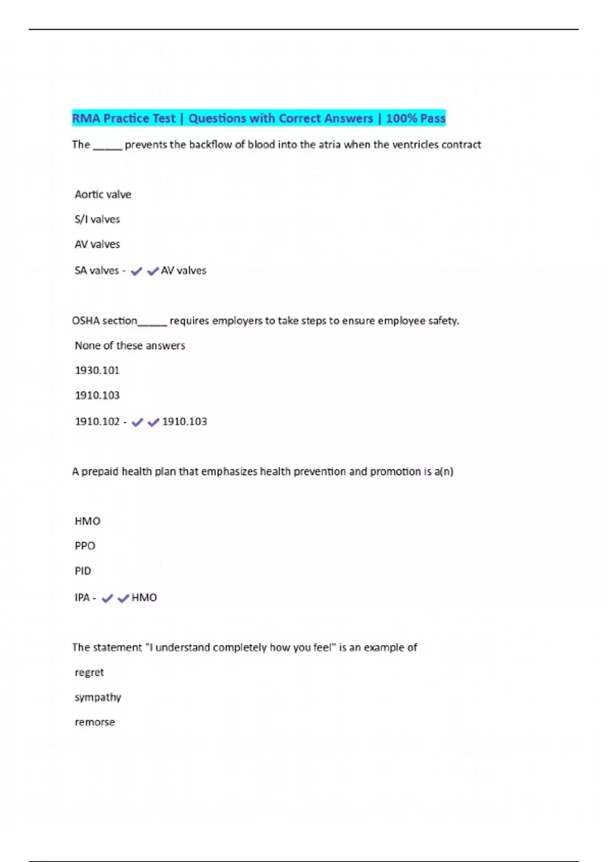 RMA Practice Test | Questions with Correct Answers | 100% Pass