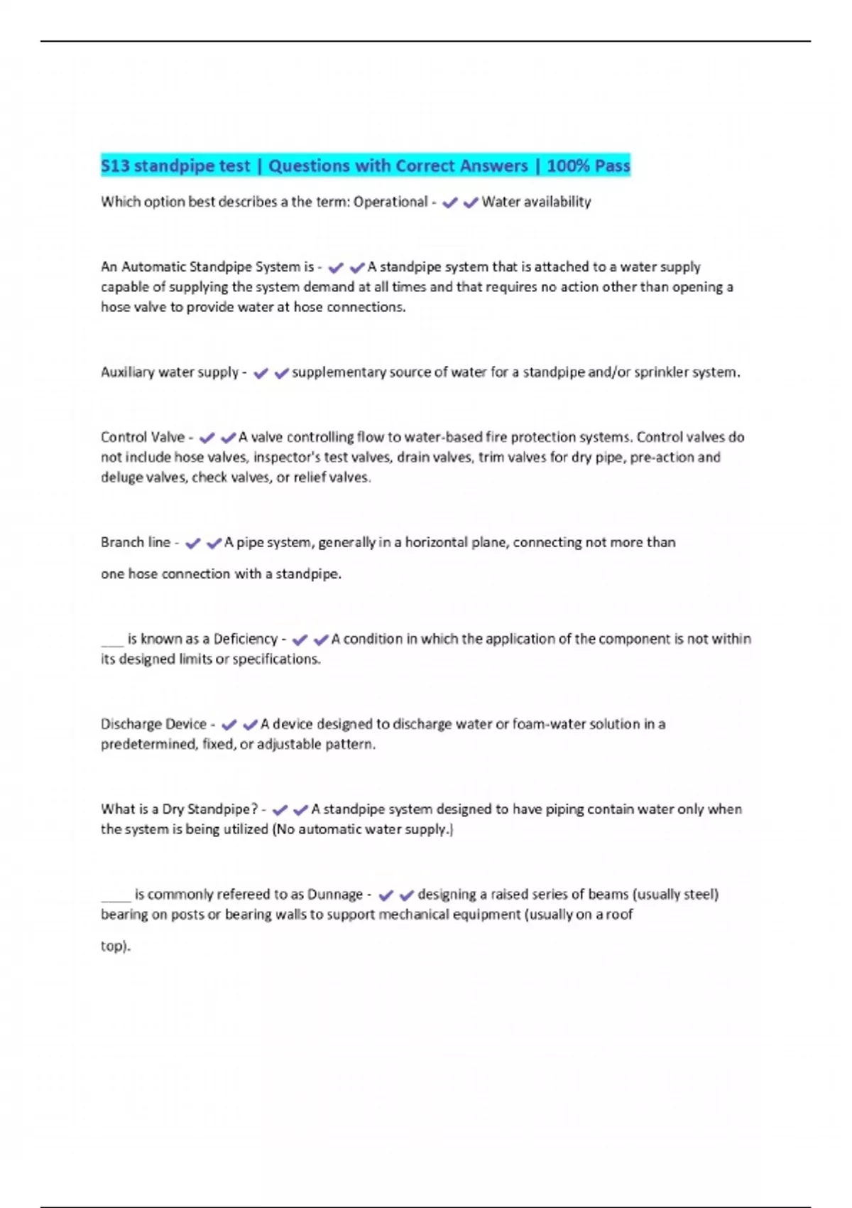 S13 standpipe test | Questions with Correct Answers | 100% Pass