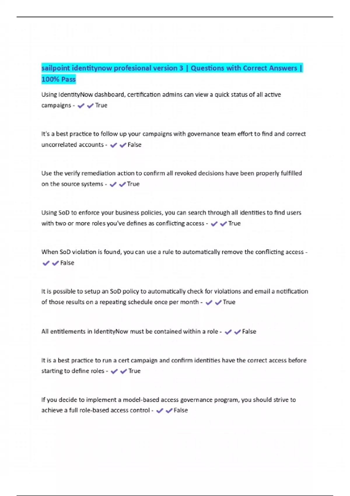 sailpoint identitynow profesional version 3 | Questions with Correct Answers | 100% Pass
