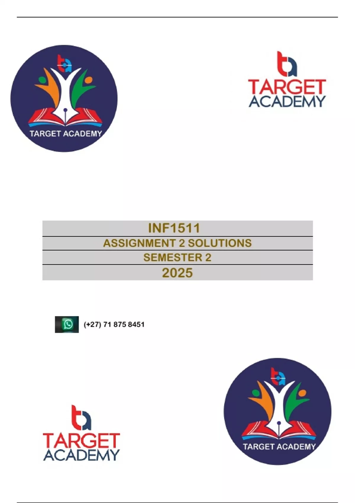 INF1511 ASSIGNMENT 2 (QUESTIONS AND ANSWERS) SEMESTER 2 2025