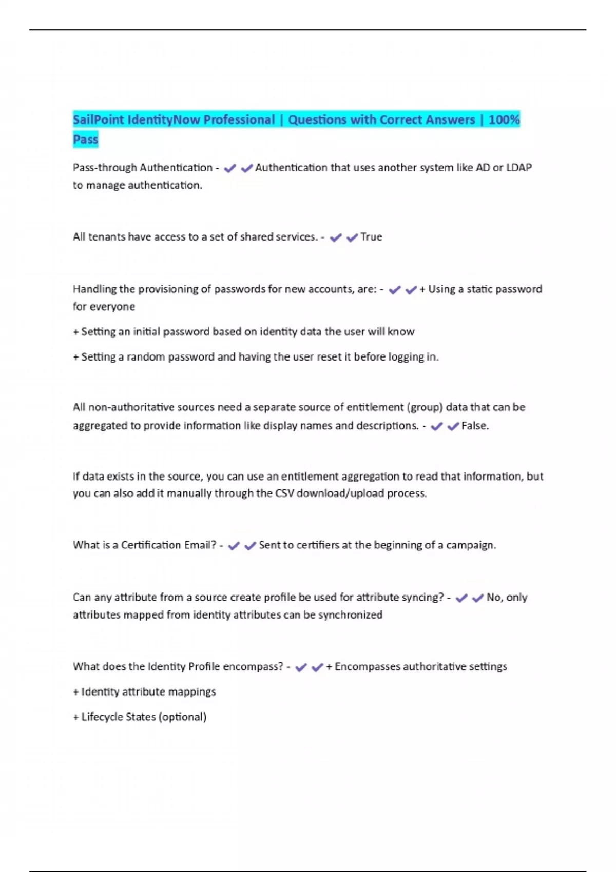 SailPoint IdentityNow Professional | Questions with Correct Answers | 100% Pass
