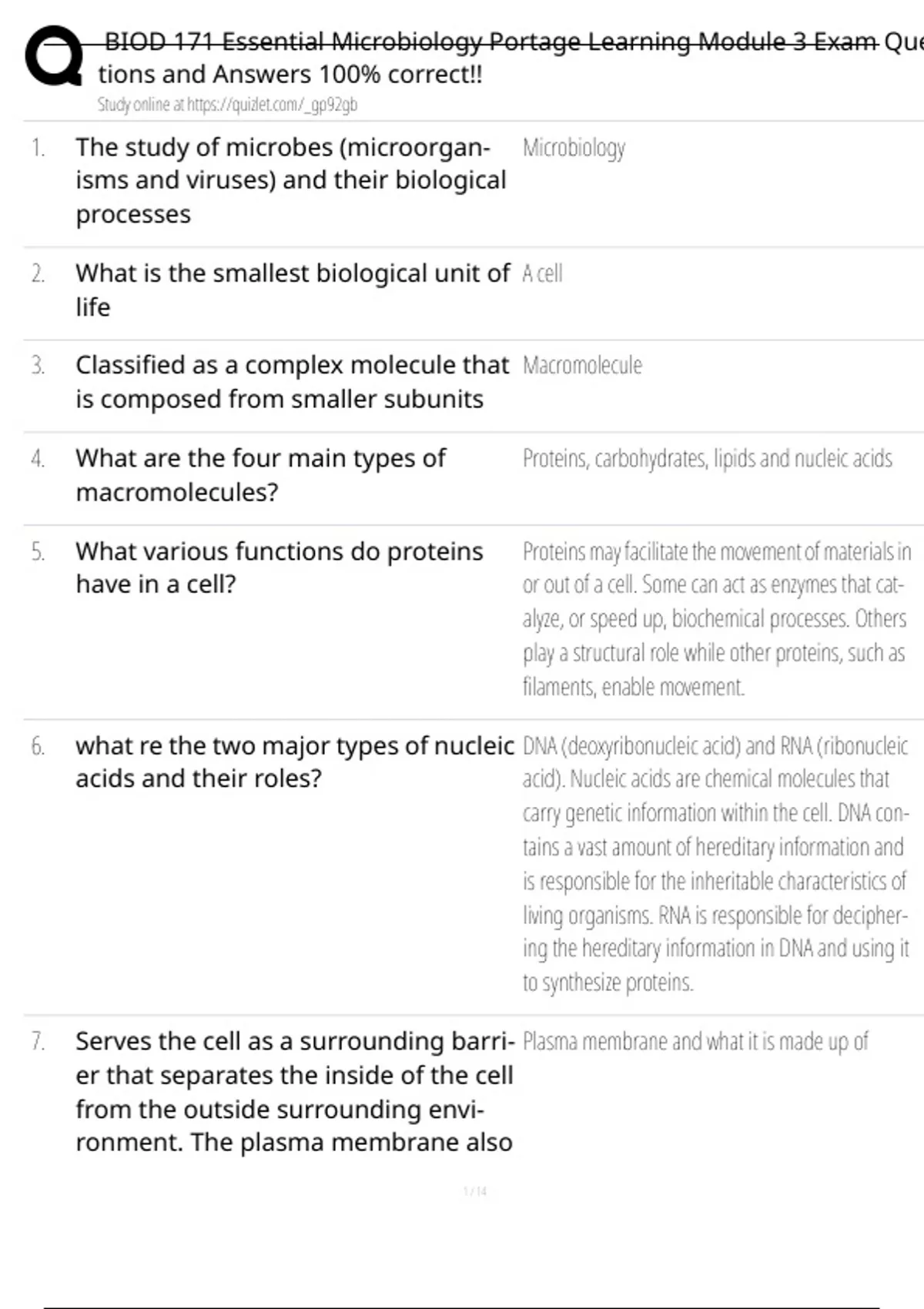 BIOD 171 Essential Microbiology Portage Learning Module 3 Exam Que