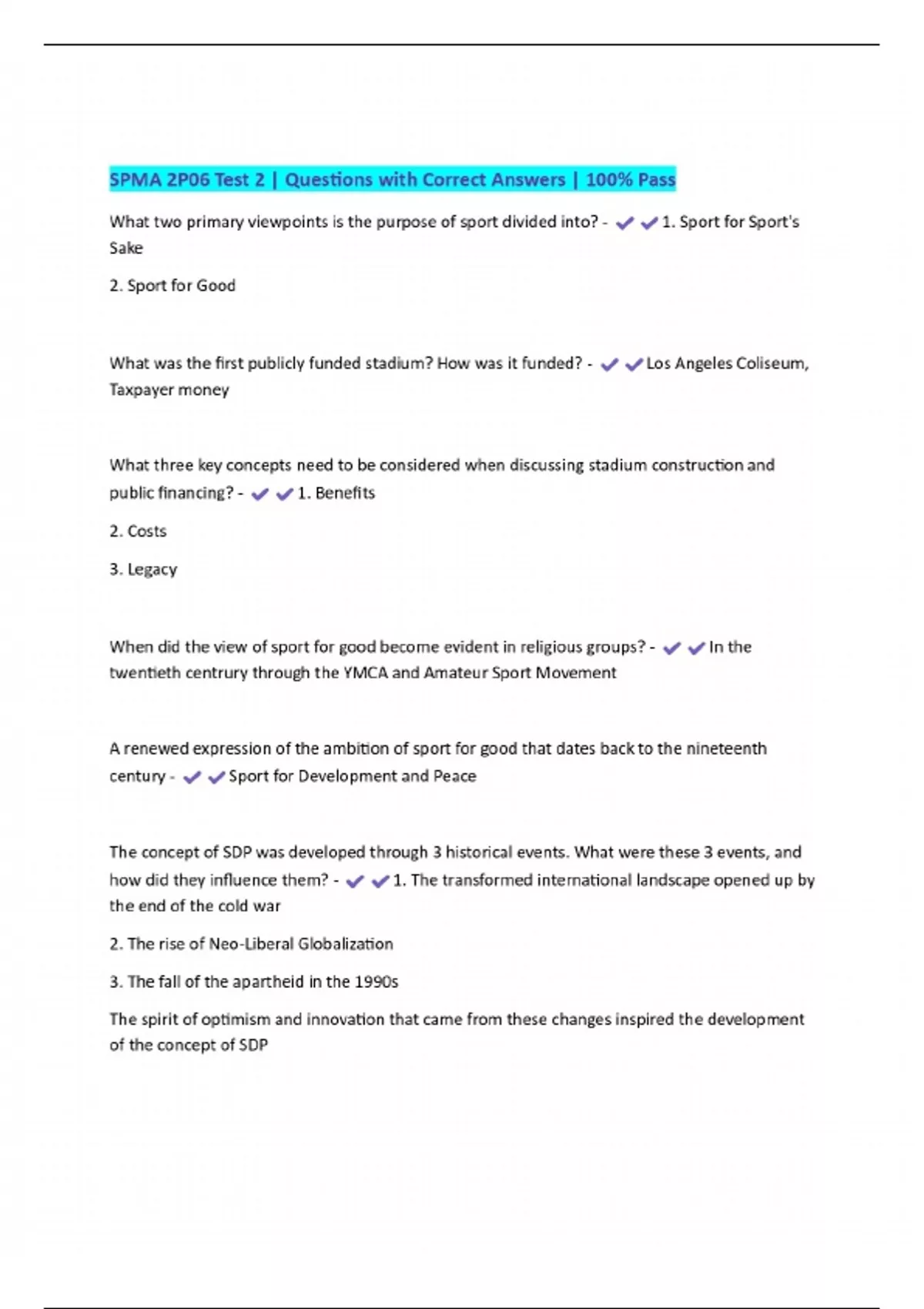 SPMA 2P06 Test 2 | Questions with Correct Answers | 100% Pass