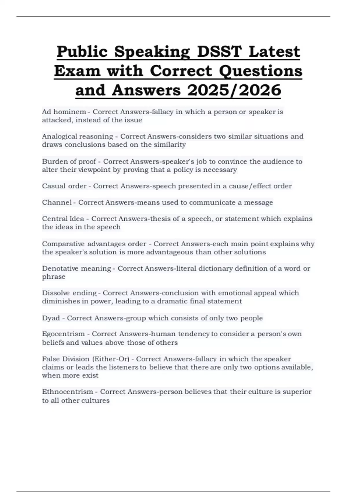 Exam with Correct Questions
