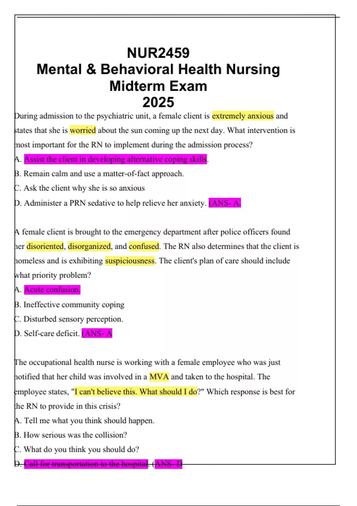 her disoriented, disorganized, and confused. The RN also determines that the client is