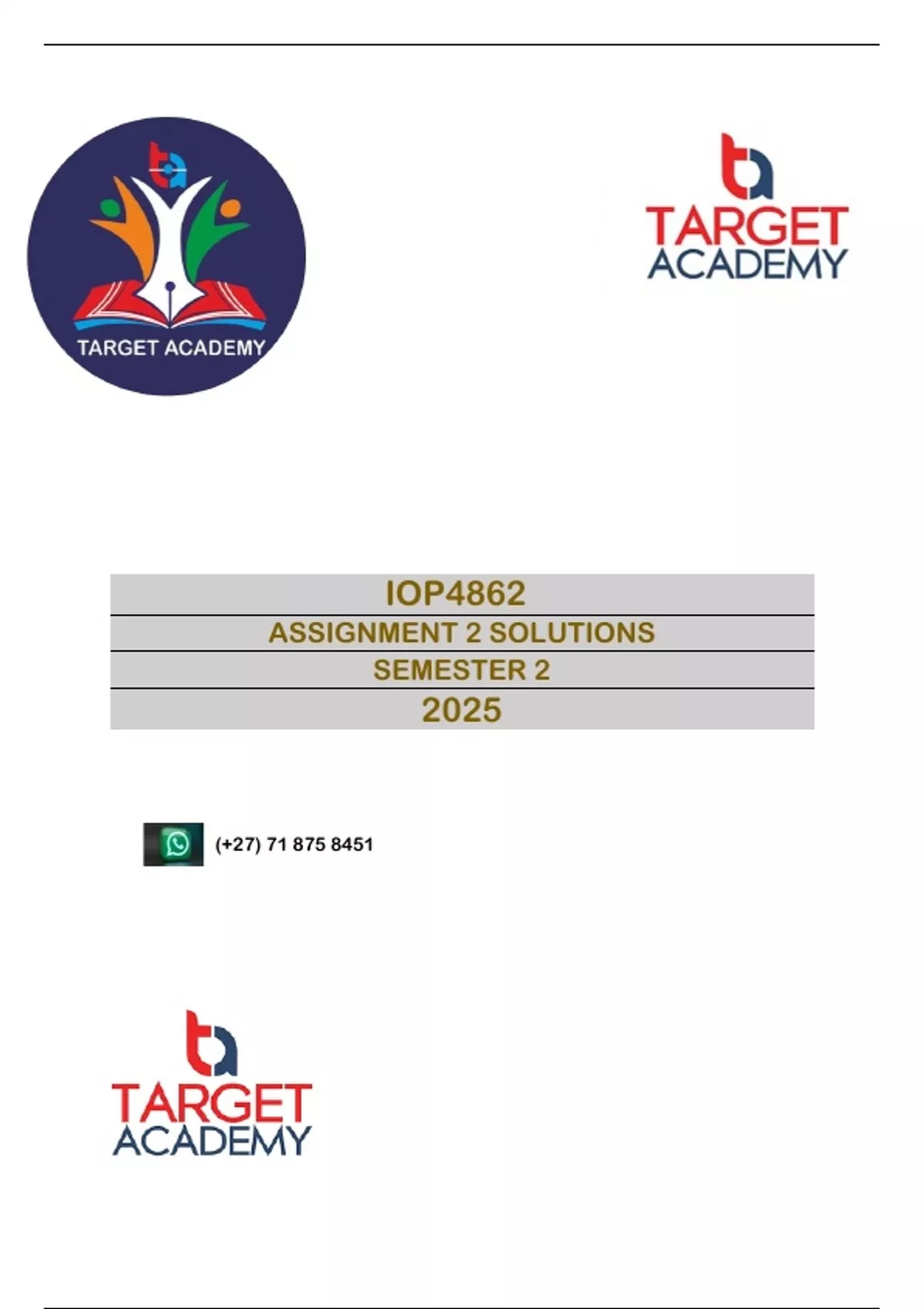 IOP4862 ASSIGNMENT 2 (QUESTIONS AND ANSWERS) SEMESTER 2 2025