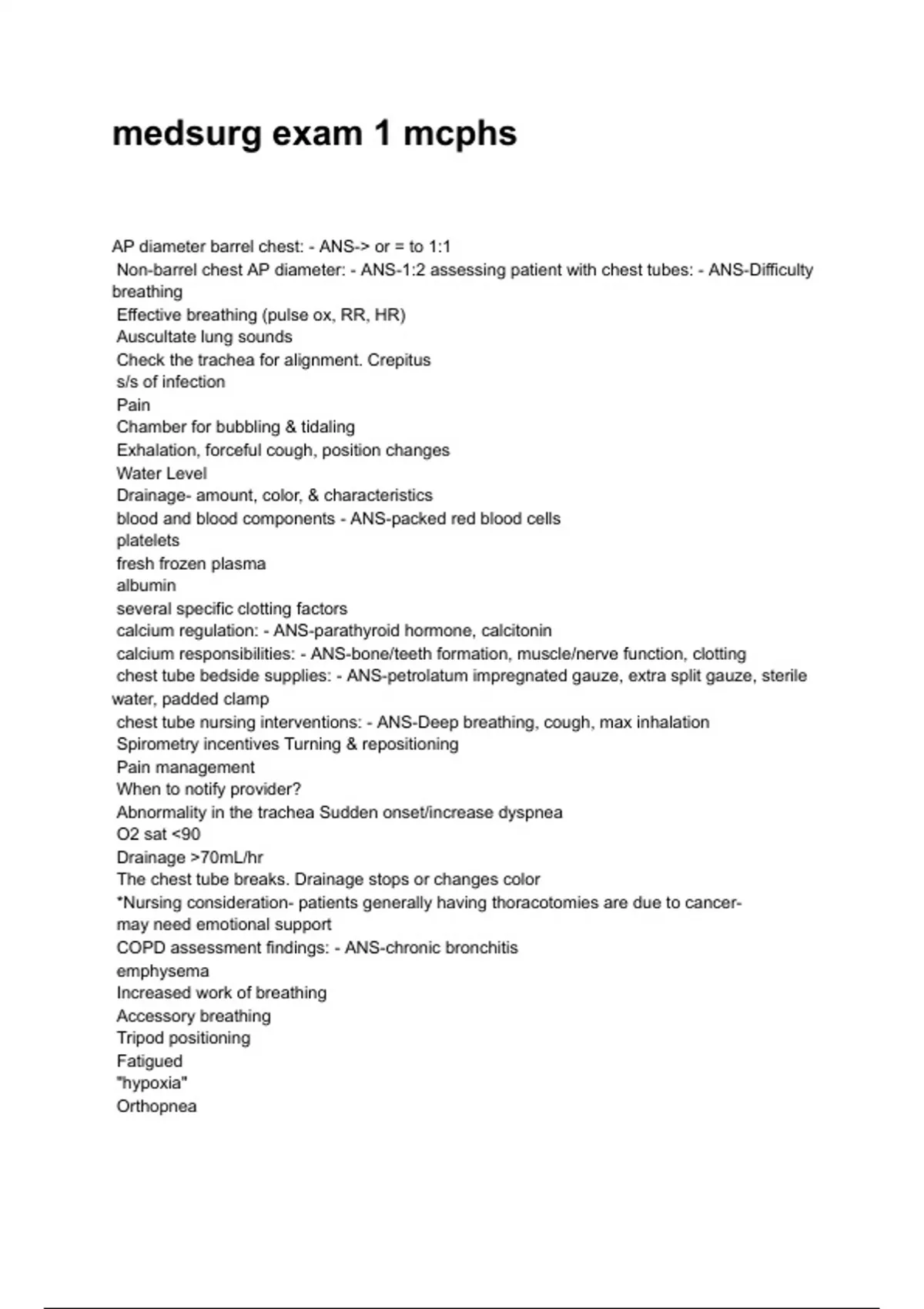 medsurg exam 1 mcphs