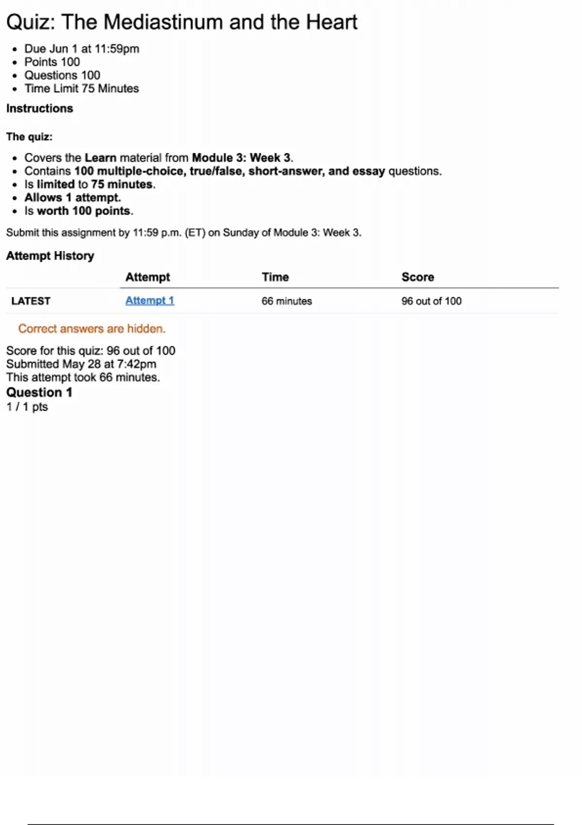 LATEST Attempt 1 66 minutes 96 out of 100