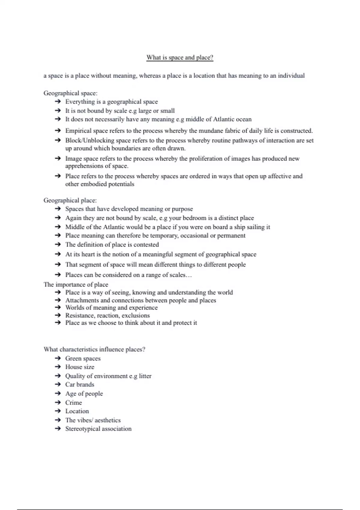 Summary A-Level Geography OCR – Changing Spaces; Making Places Notes (Human Geography, Paper 2)