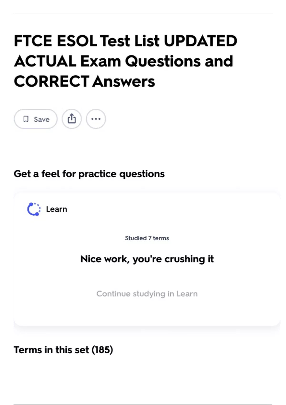Continue studying in Learn