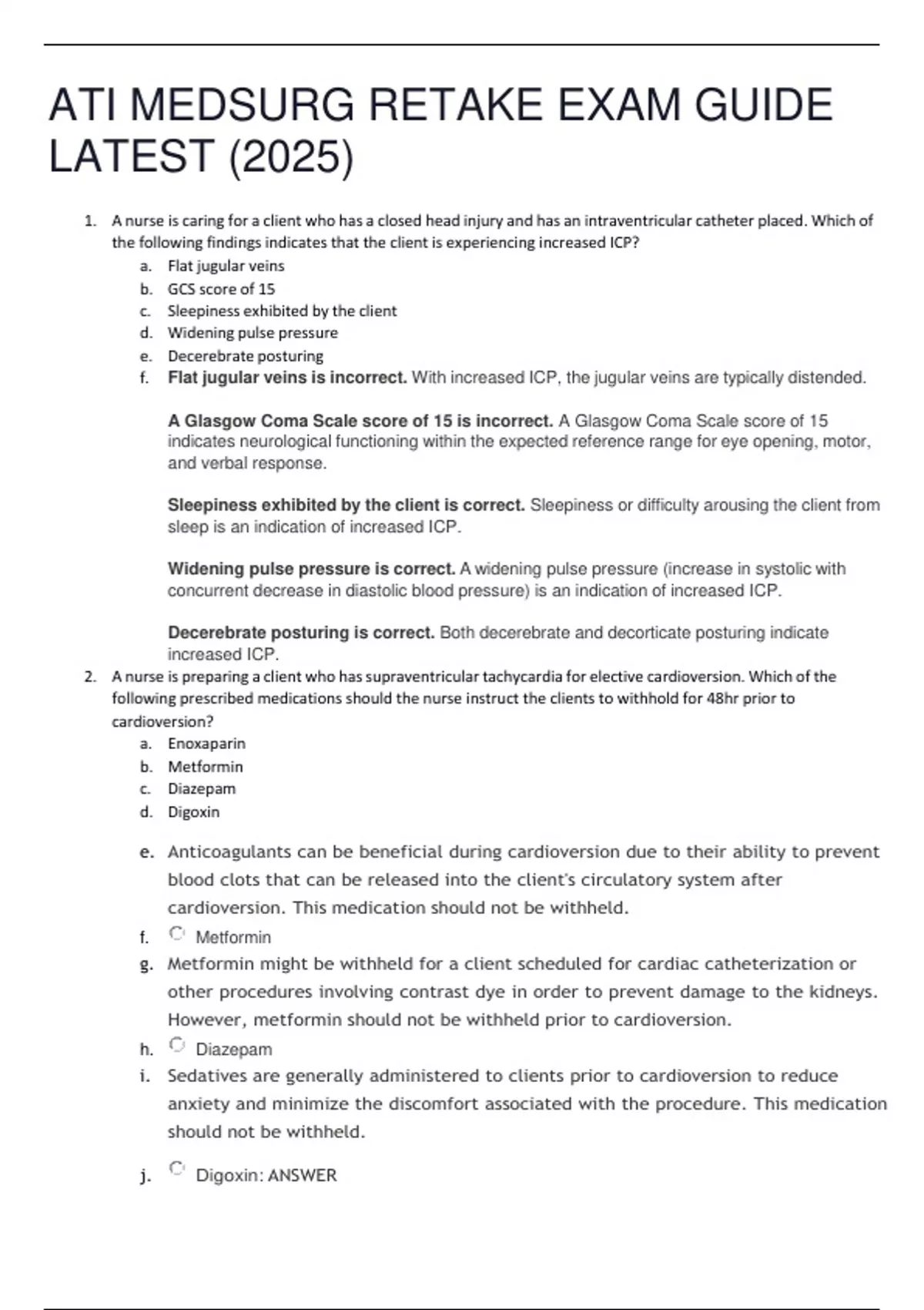 2. A nurse is preparing a client who has supraventricular tachycardia for elective cardioversion. Which of the