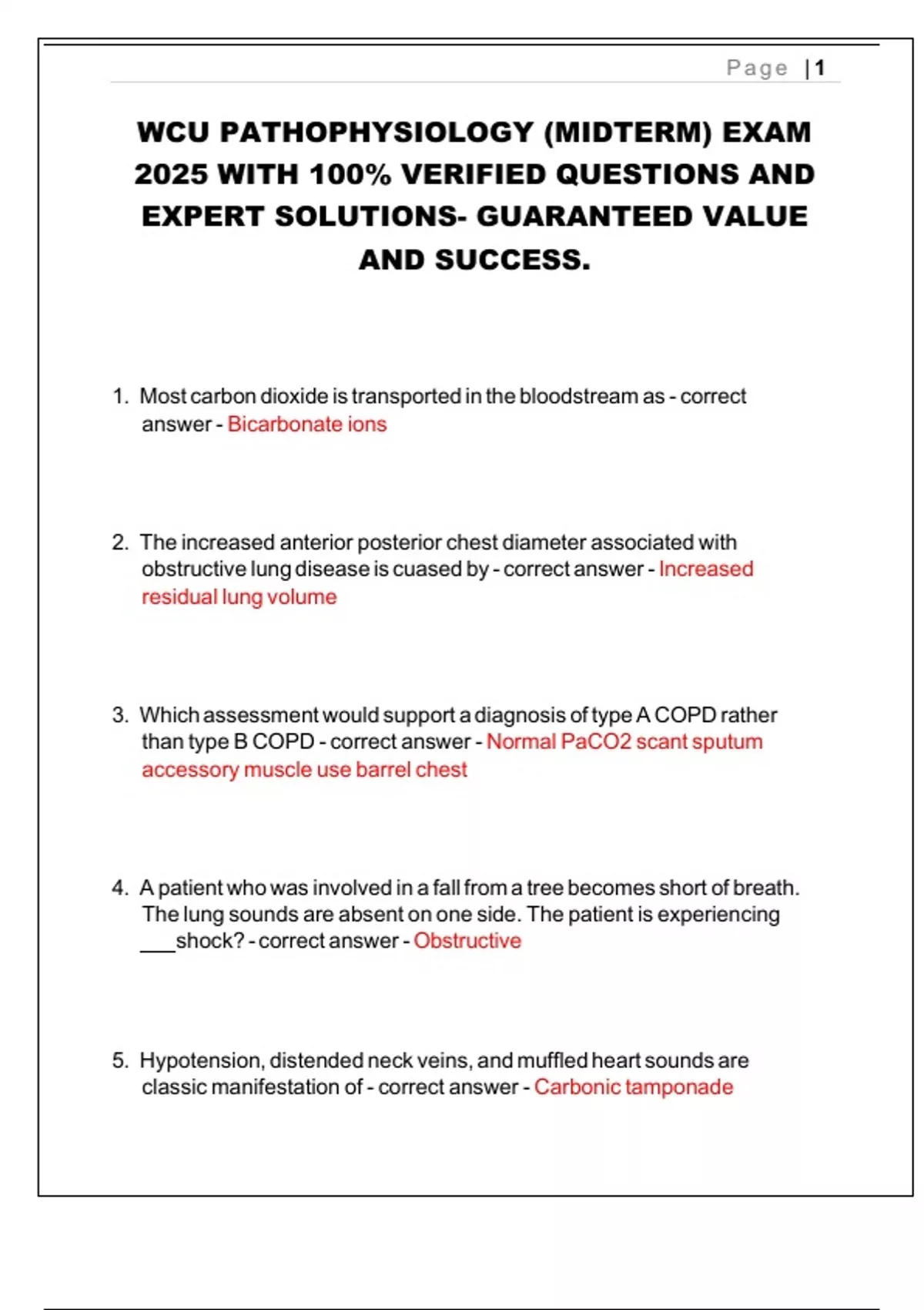 WCU PATHOPHYSIOLOGY (MIDTERM) EXAM 2025 WITH 100- VERIFIED QUESTIONS AND EXPERT SOLUTIONS- GUARANTEED VALUE AND SUCCESS.