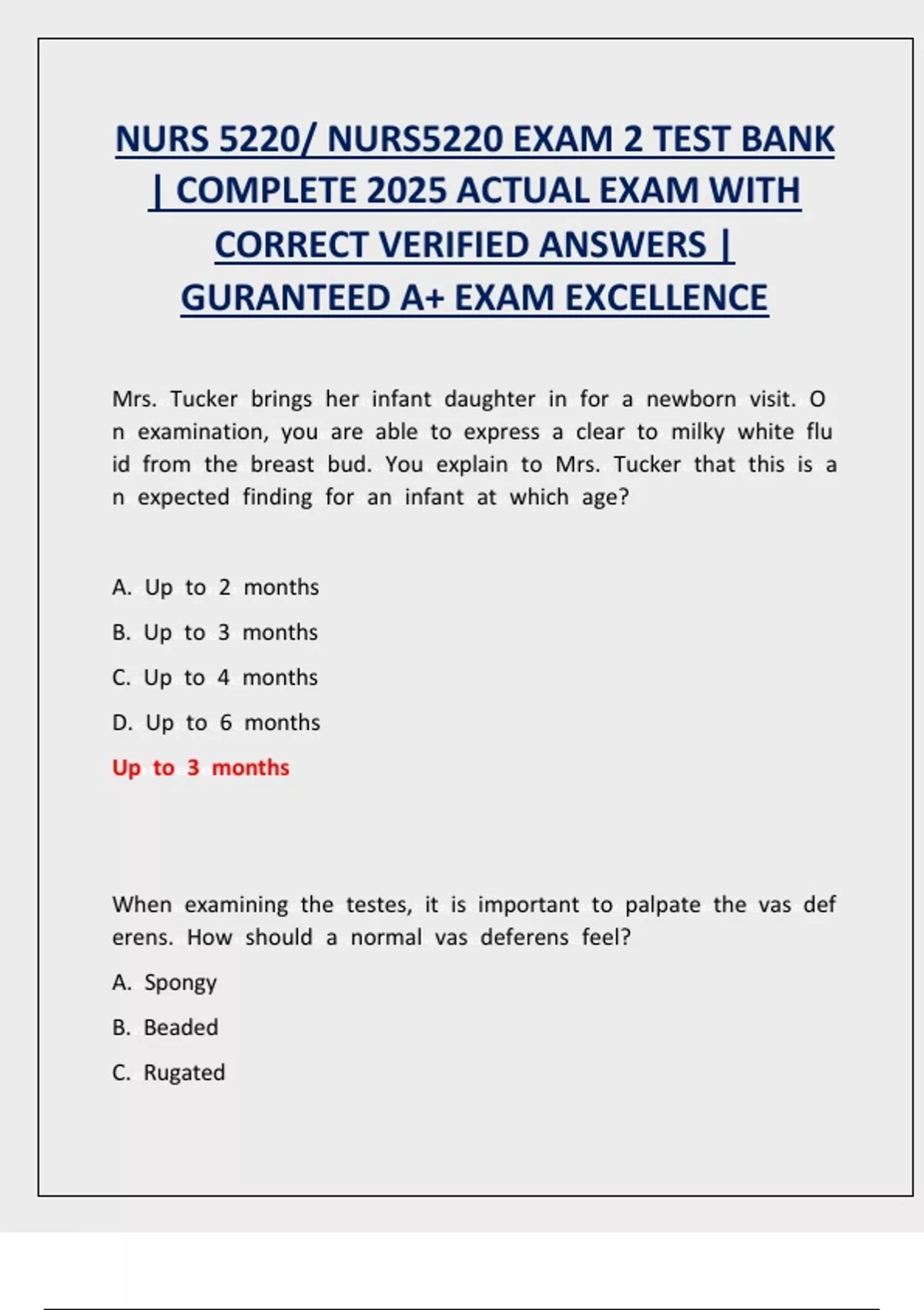 NURS 5220/ NURS5220 EXAM 2 TEST BANK | COMPLETE 2025 ACTUAL EXAM WITH CORRECT VERIFIED ANSWERS | GURANTEED A+ EXAM EXCELLENCE