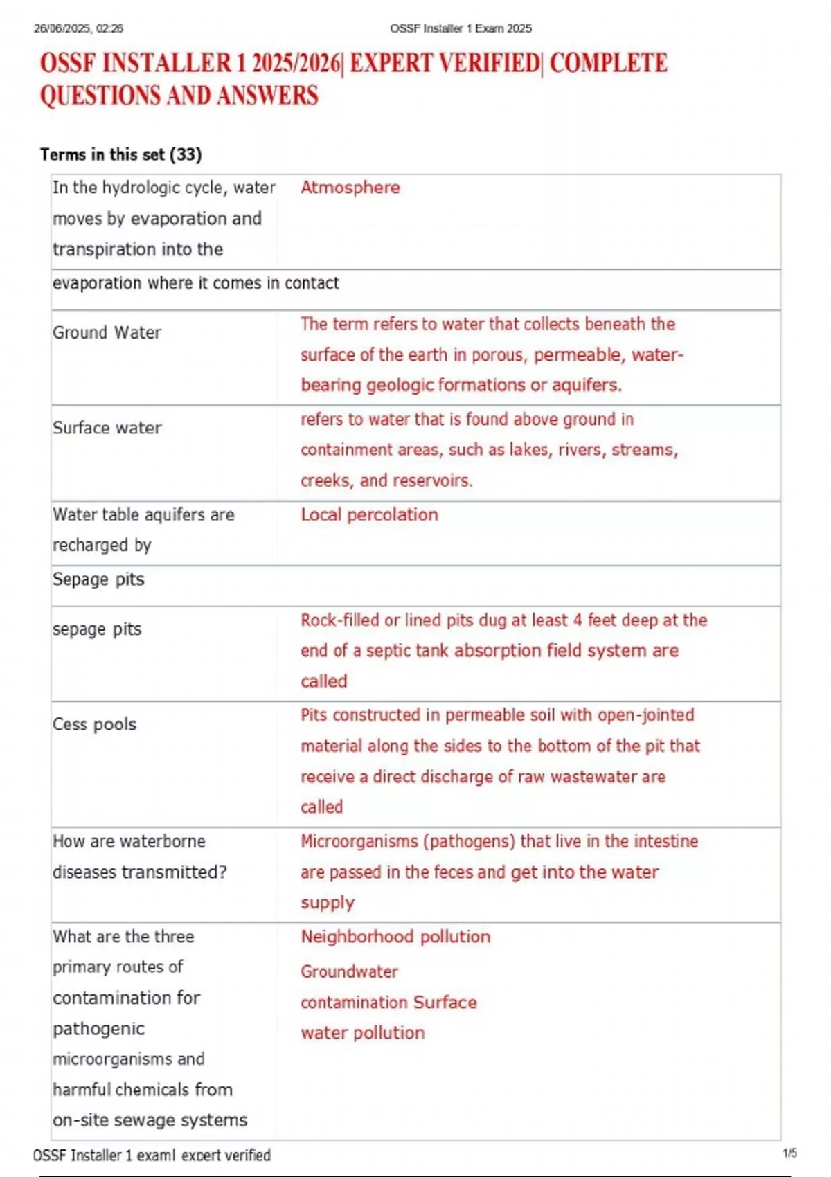 OSSF INSTALLER 1 2025/2026| EXPERT VERIFIED| COMPLETE QUESTIONS AND ANSWERS