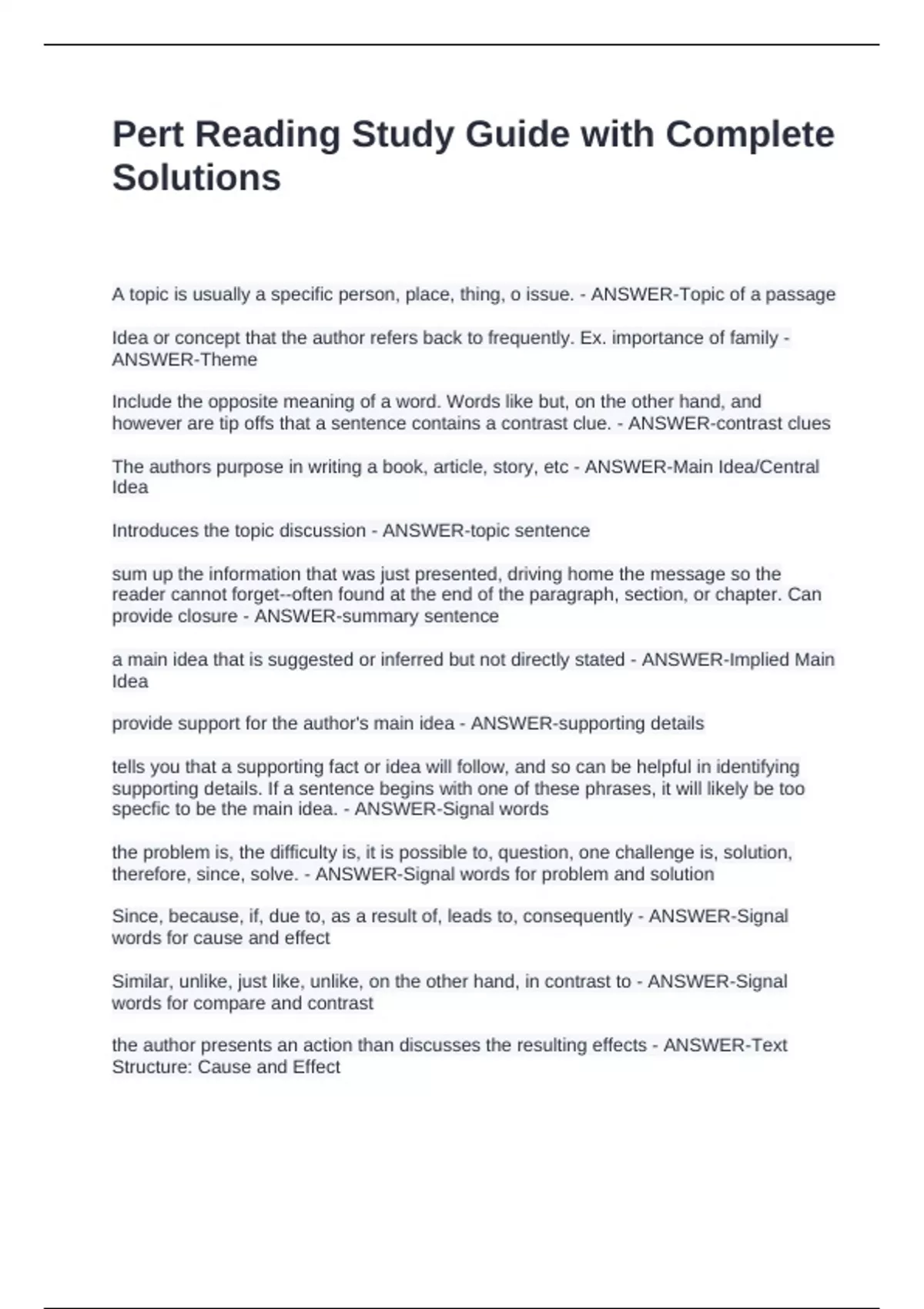 Pert Reading Study Guide with Complete