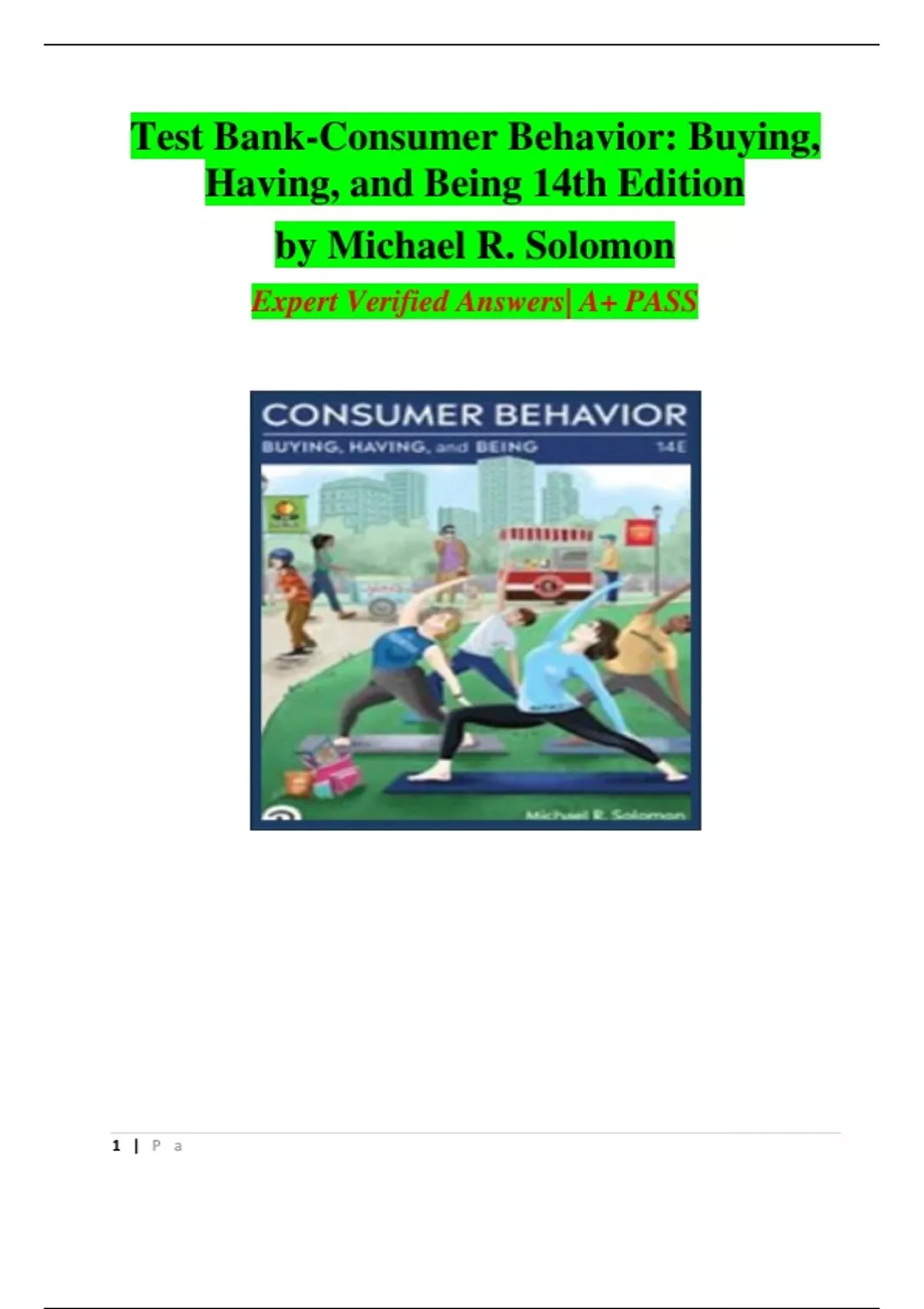 Test Bank-Consumer Behavior: Buying, Having, and Being 14th Edition by Michael R. Solomon Expert Verified Answers| A+ PASS