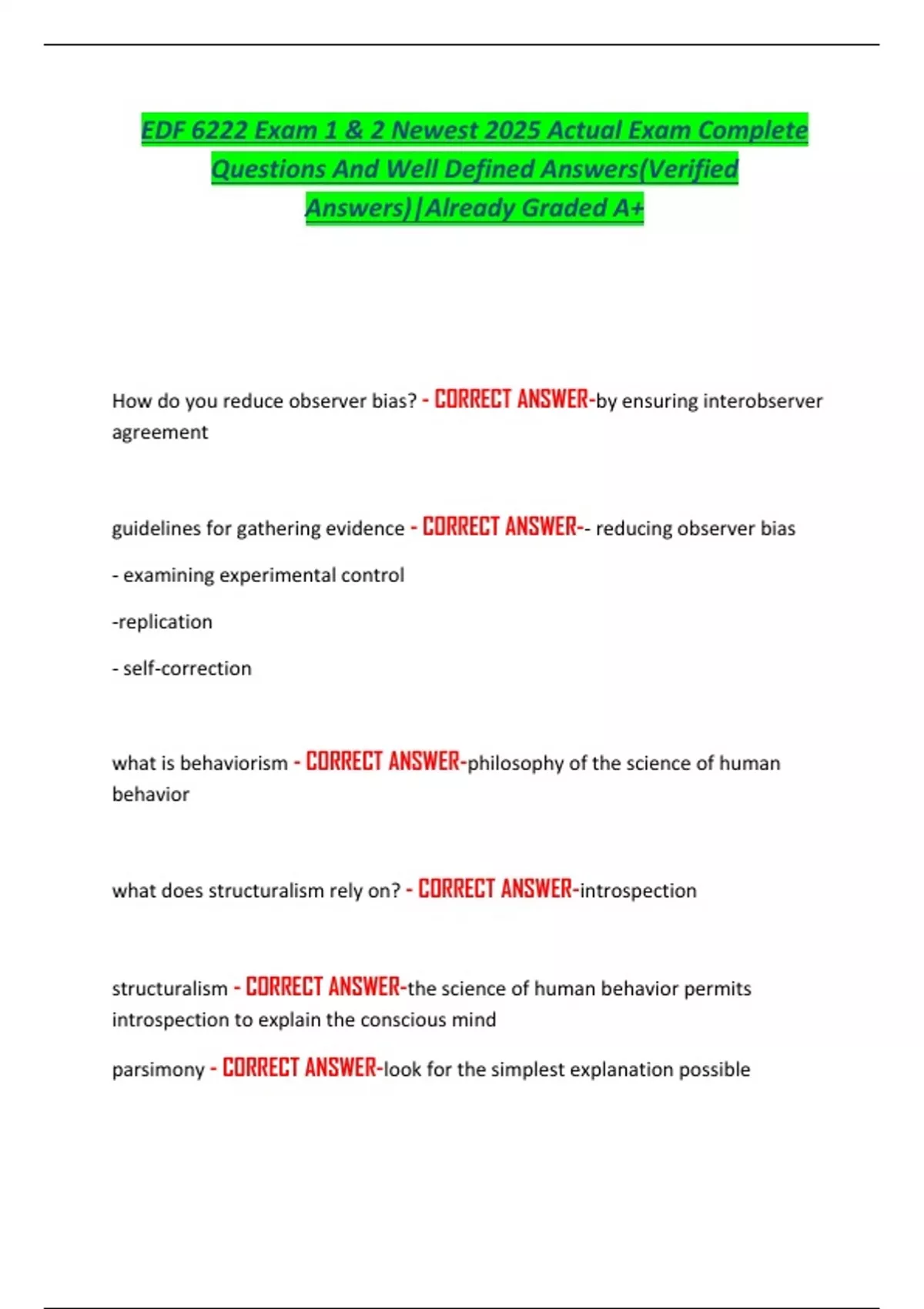 EDF 6222 Exam 1 & 2 Newest 2025 Actual Exam Complete Questions And Well Defined Answers(Verified Answers)|Already Graded A+