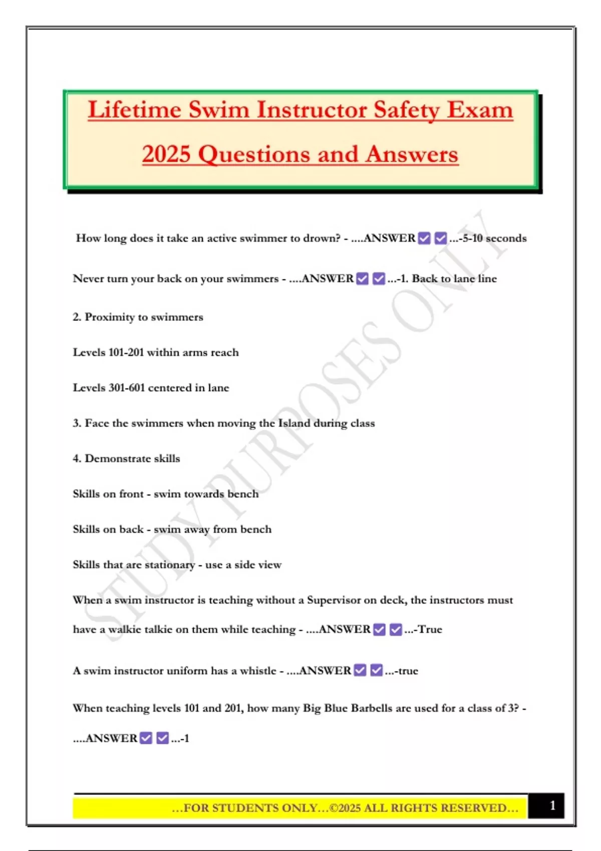 Lifetime Swim Instructor Safety Exam 2025 Questions and Answers