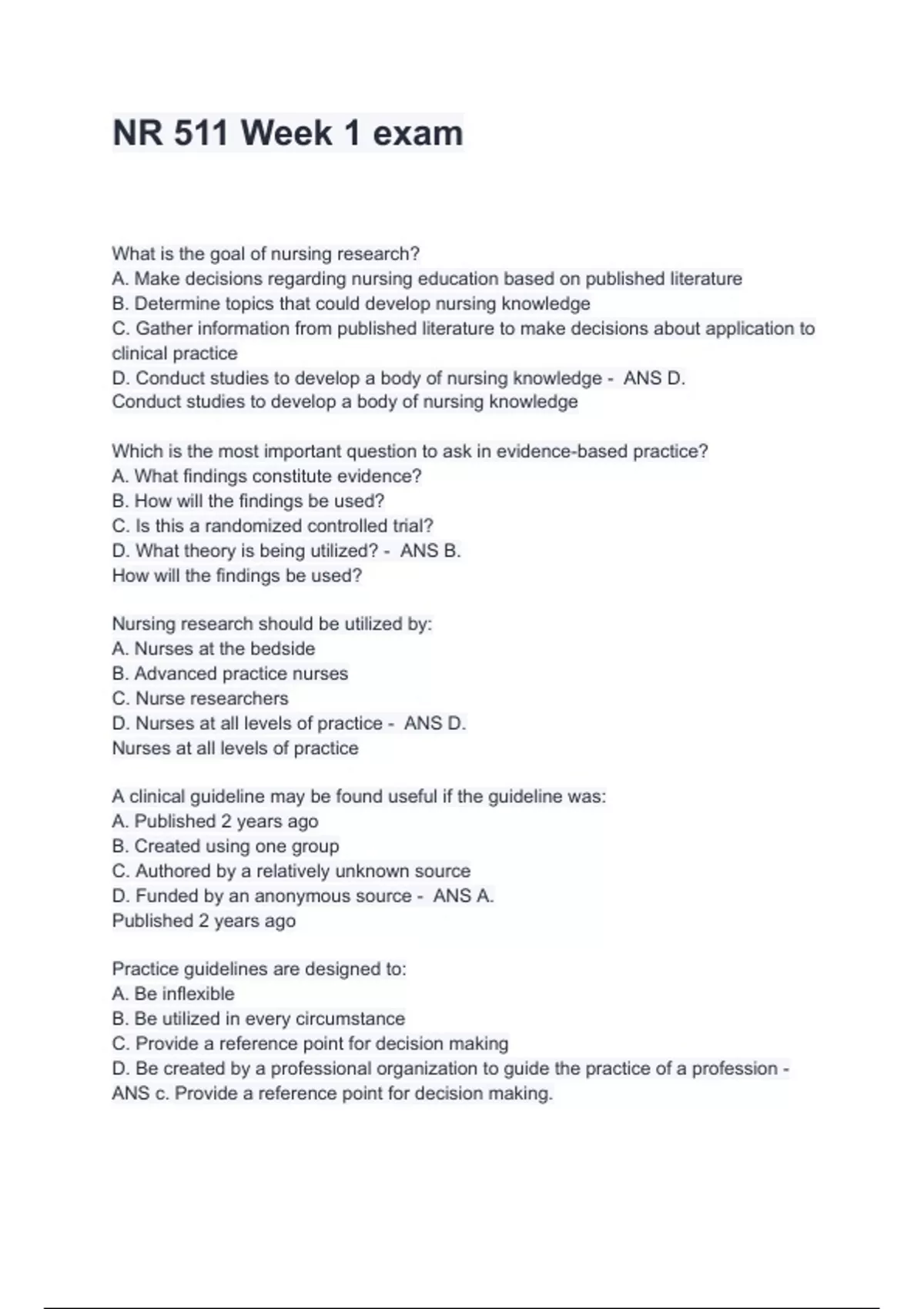 NR 511 Week 1 exam