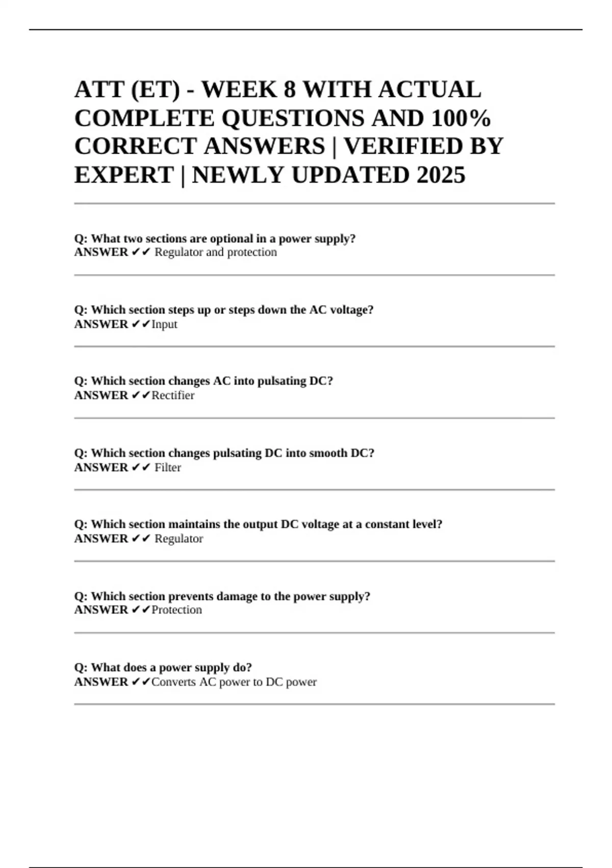 ANSWER ✔✔Converts AC power to pulsating DC power