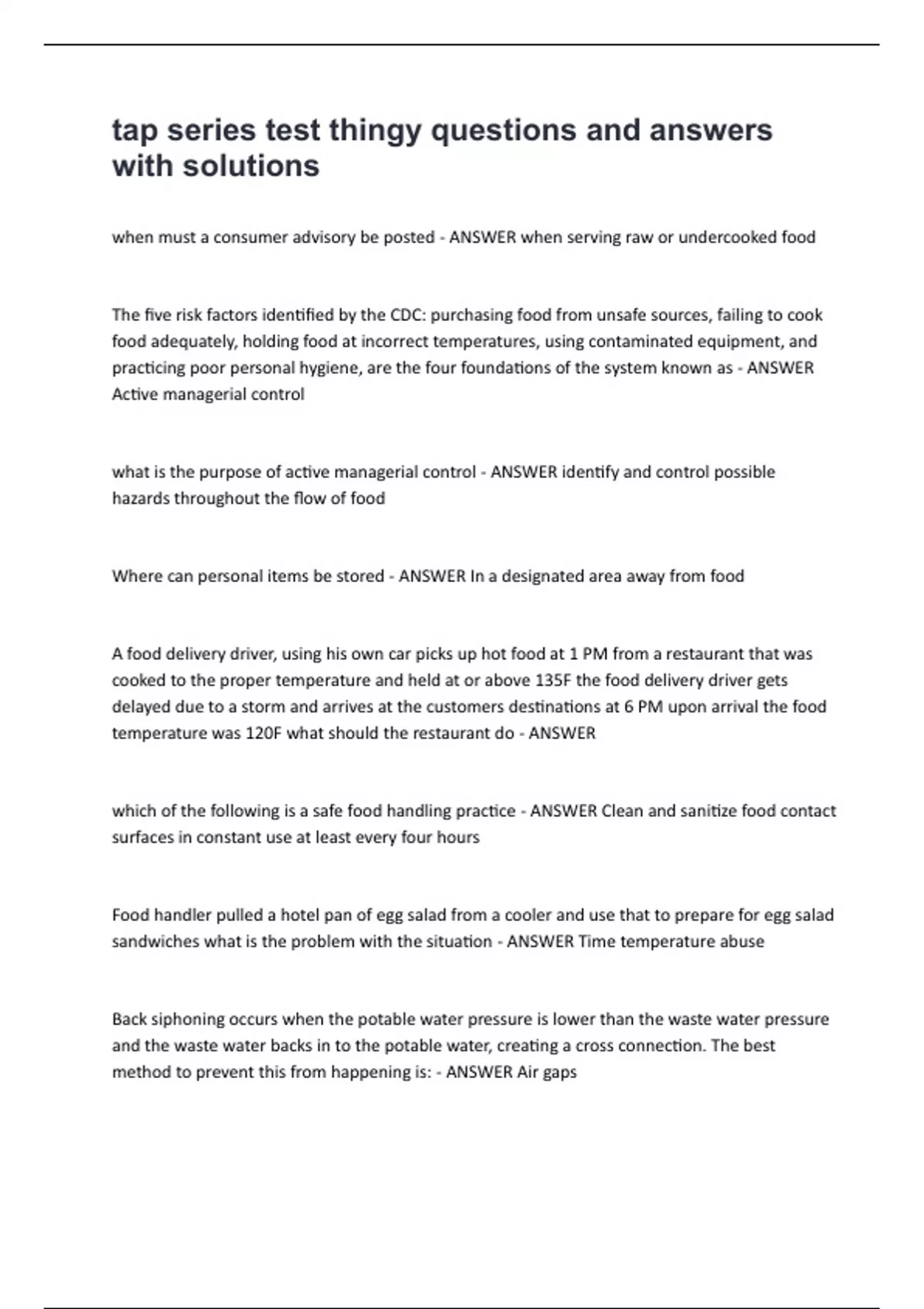 which of the following is a safe food handling practice - ANSWER Clean and sanitize food contact