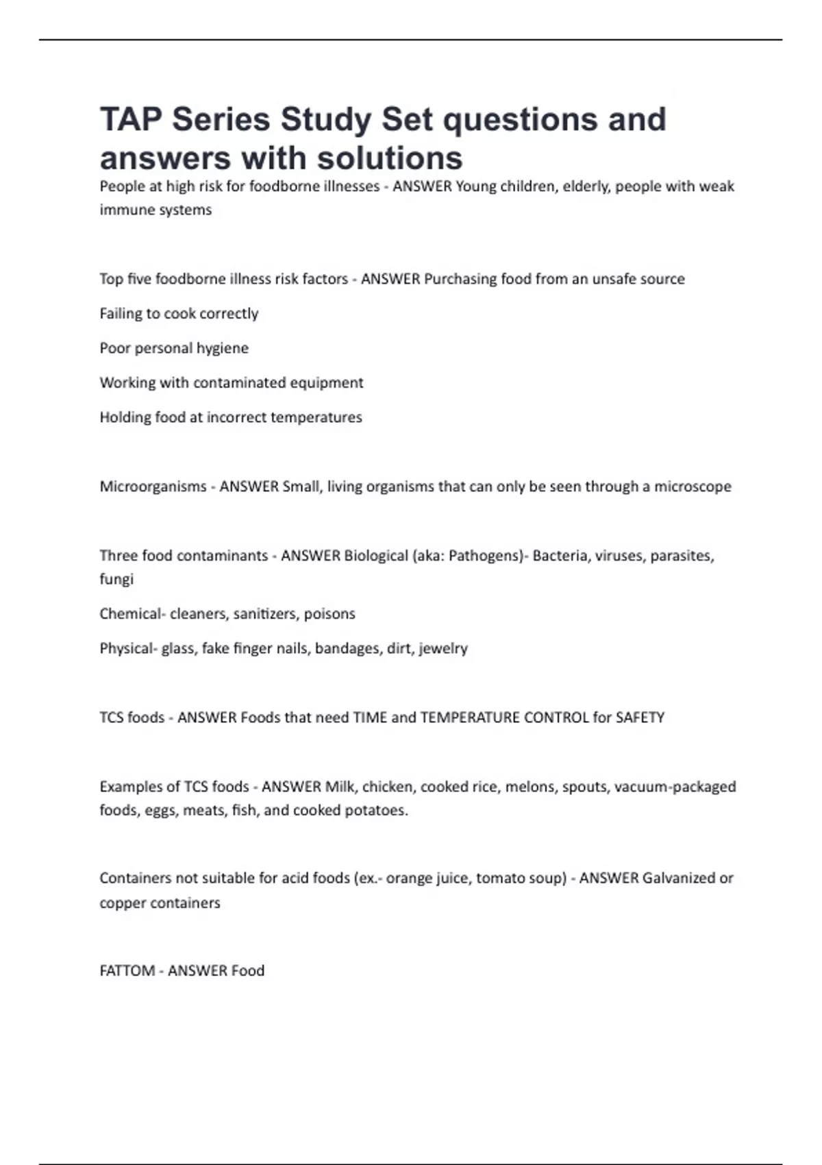 People at high risk for foodborne illnesses - ANSWER Young children, elderly, people with weak