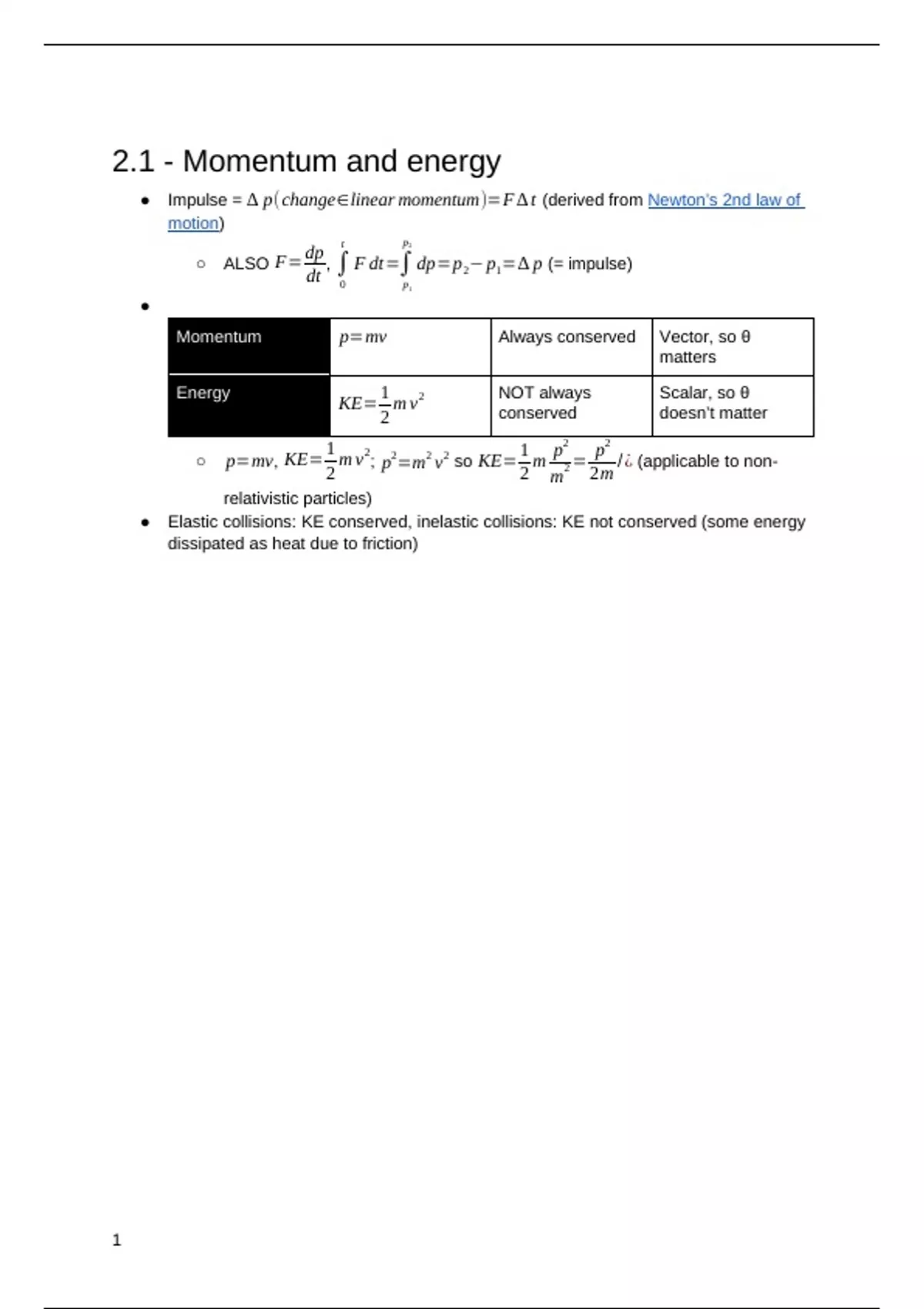 2.1 - Momentum and energy