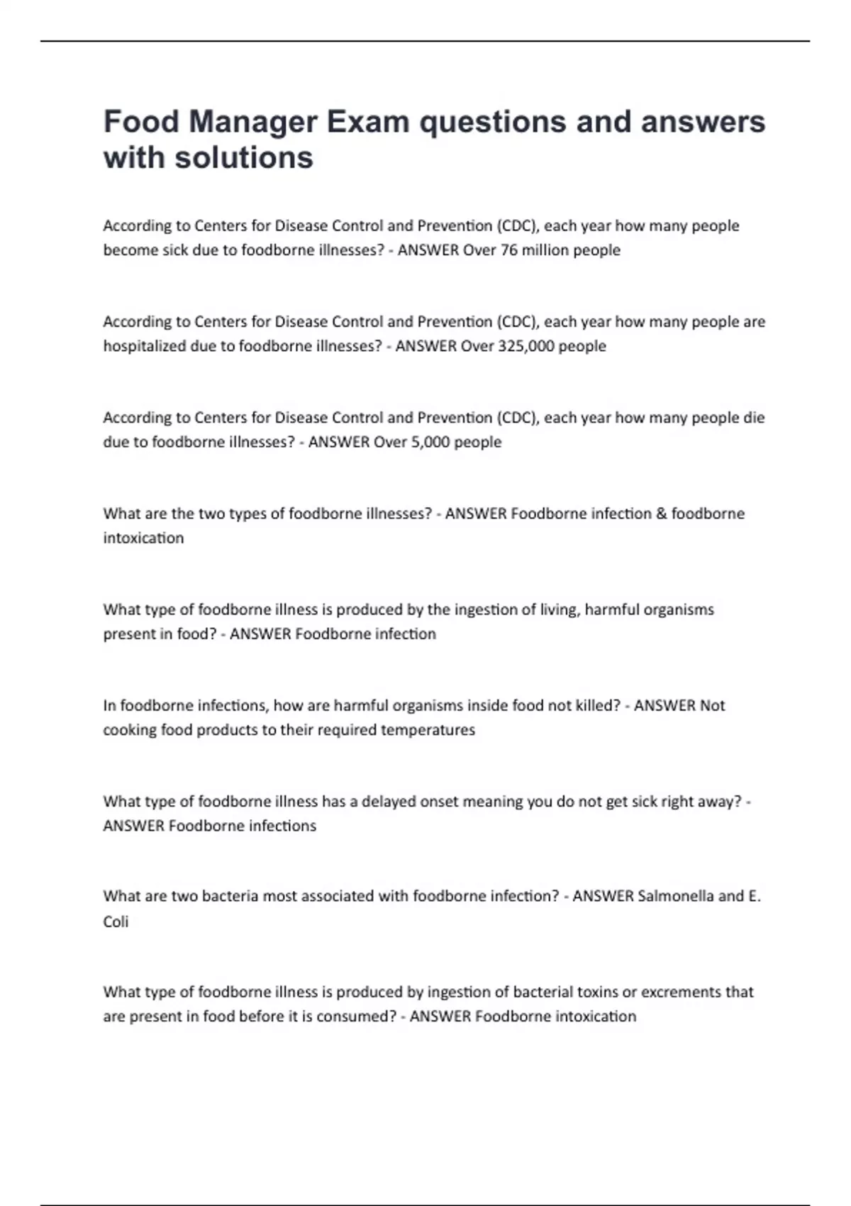Food Manager Exam questions and answers with solutions.