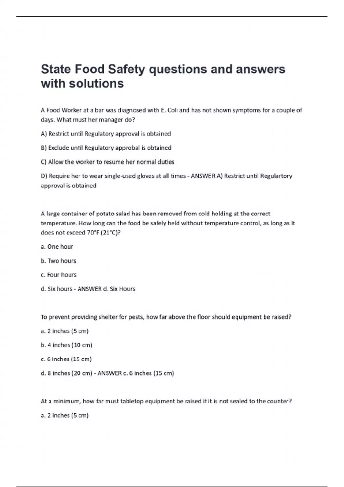 State Food Safety questions and answers with solutions.