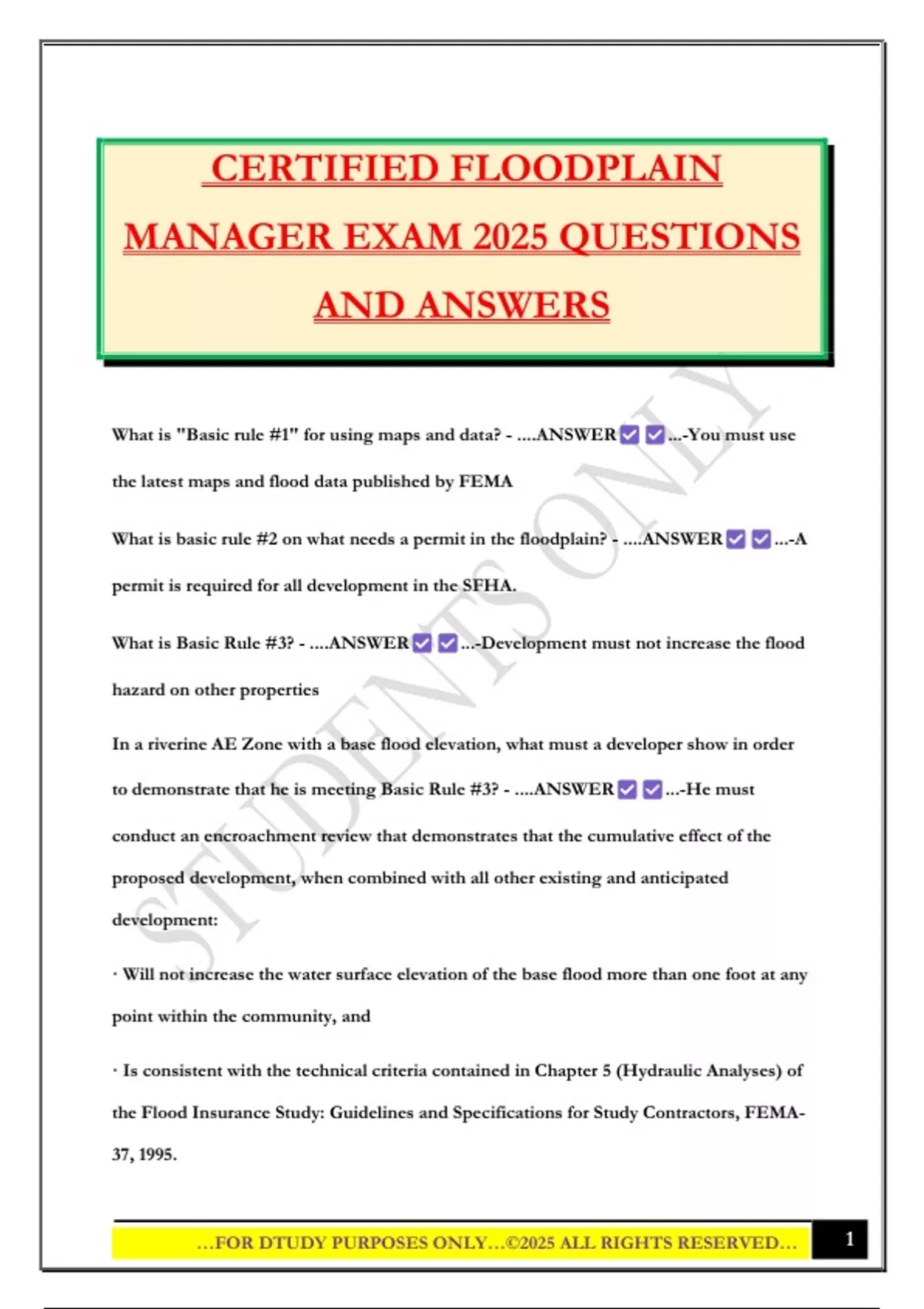 CERTIFIED FLOODPLAIN MANAGER EXAM 2025 QUESTIONS AND ANSWERS