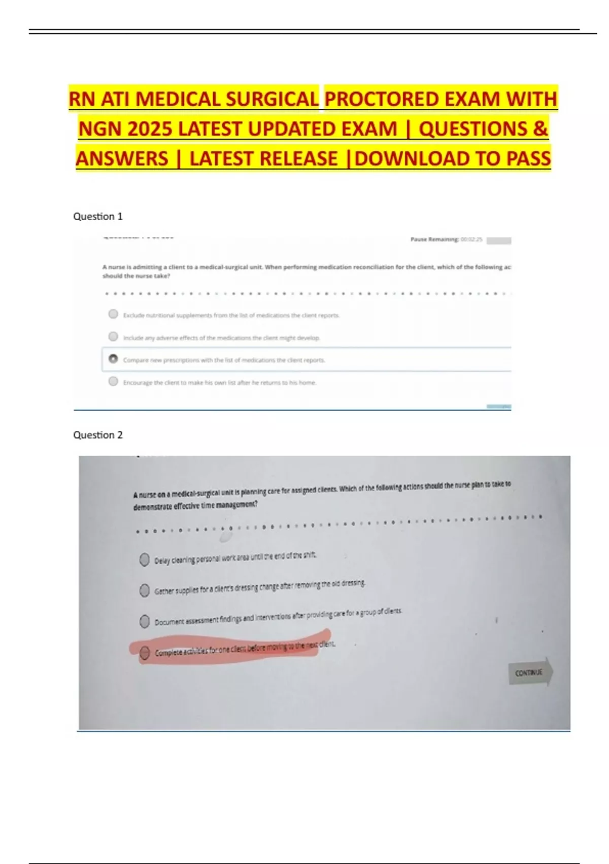 RN ATI MEDICAL SURGICAL PROCTORED EXAM WITH