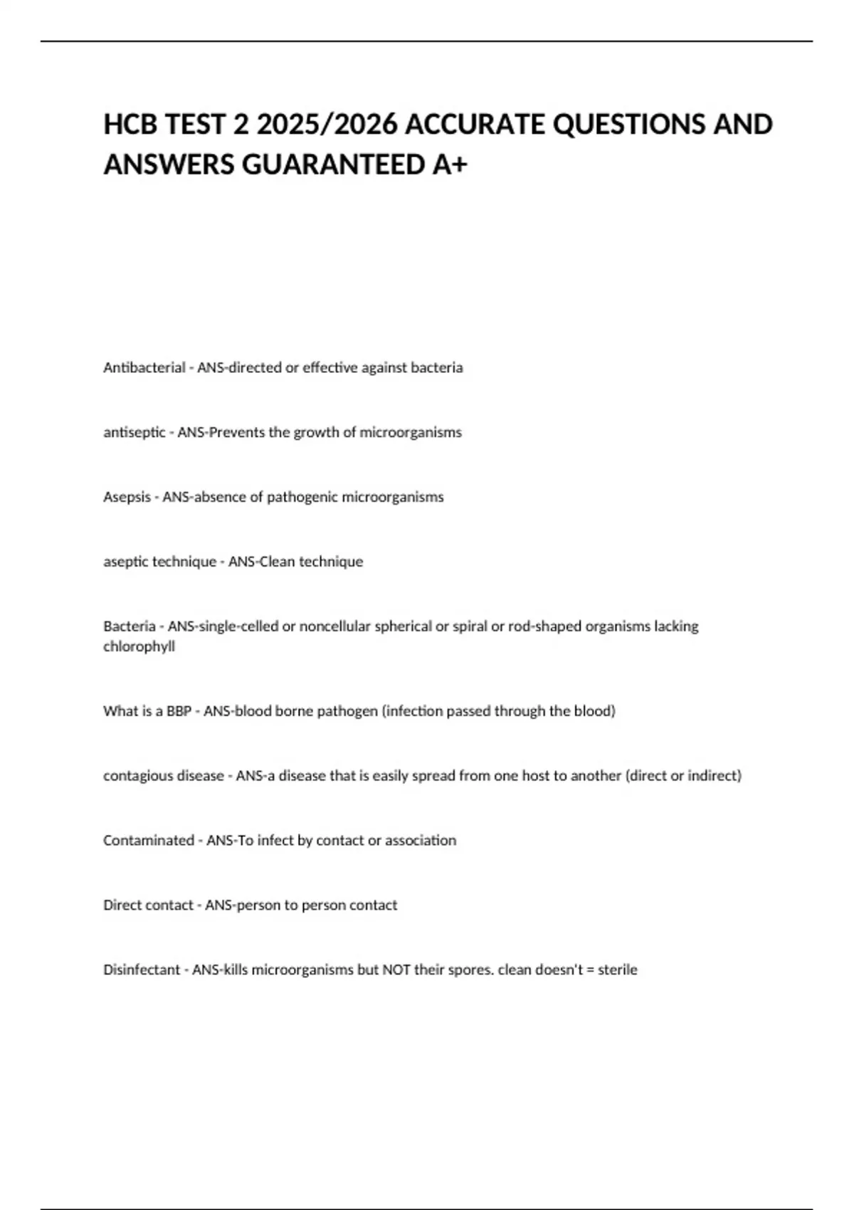 HCB TEST 2 2025/2026 ACCURATE QUESTIONS AND