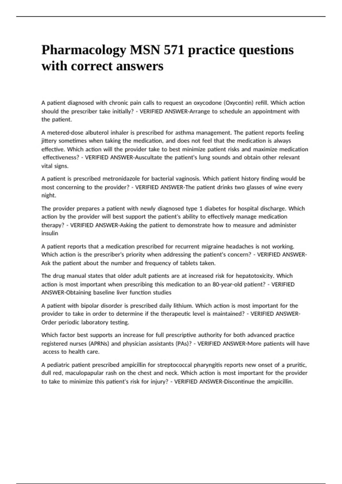 Pharmacology MSN 571 practice questions