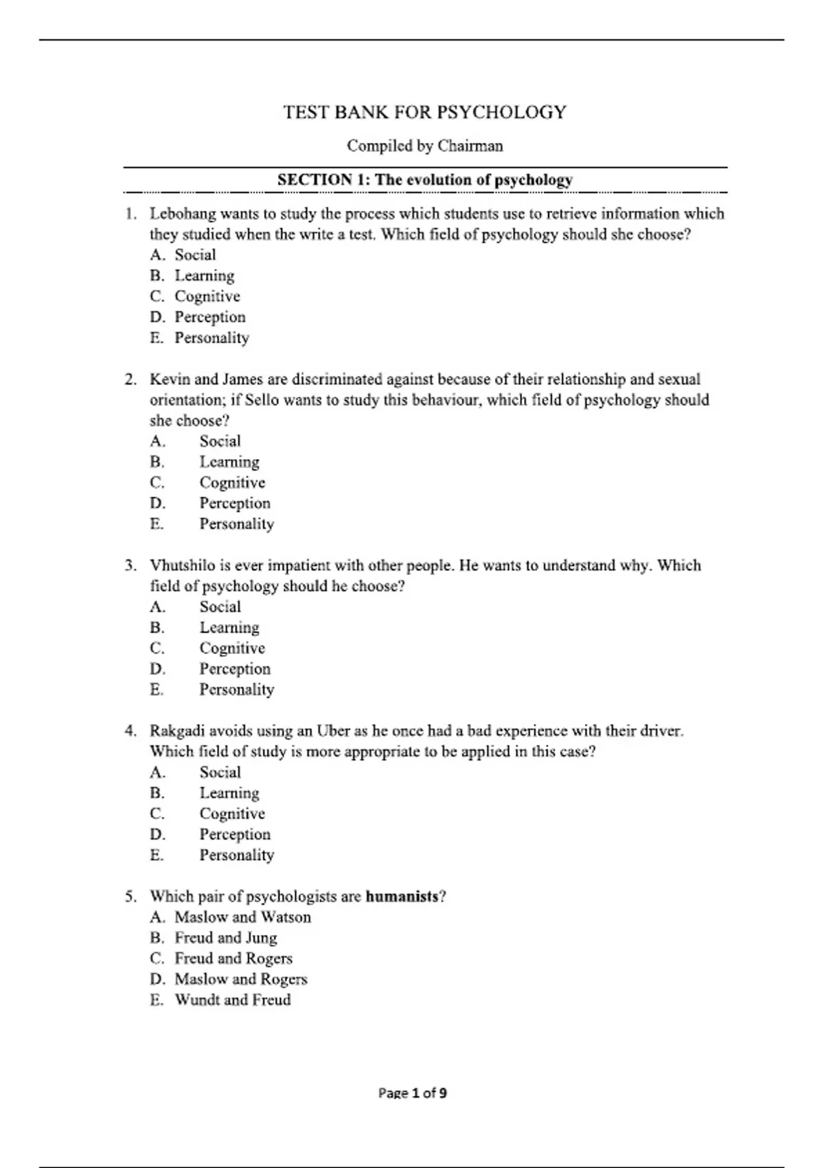 Psychology – Test Bank Myers & DeWall (13th Edition), 2023–2024 Complete Multiple Choice Questions with Answers per Chapter