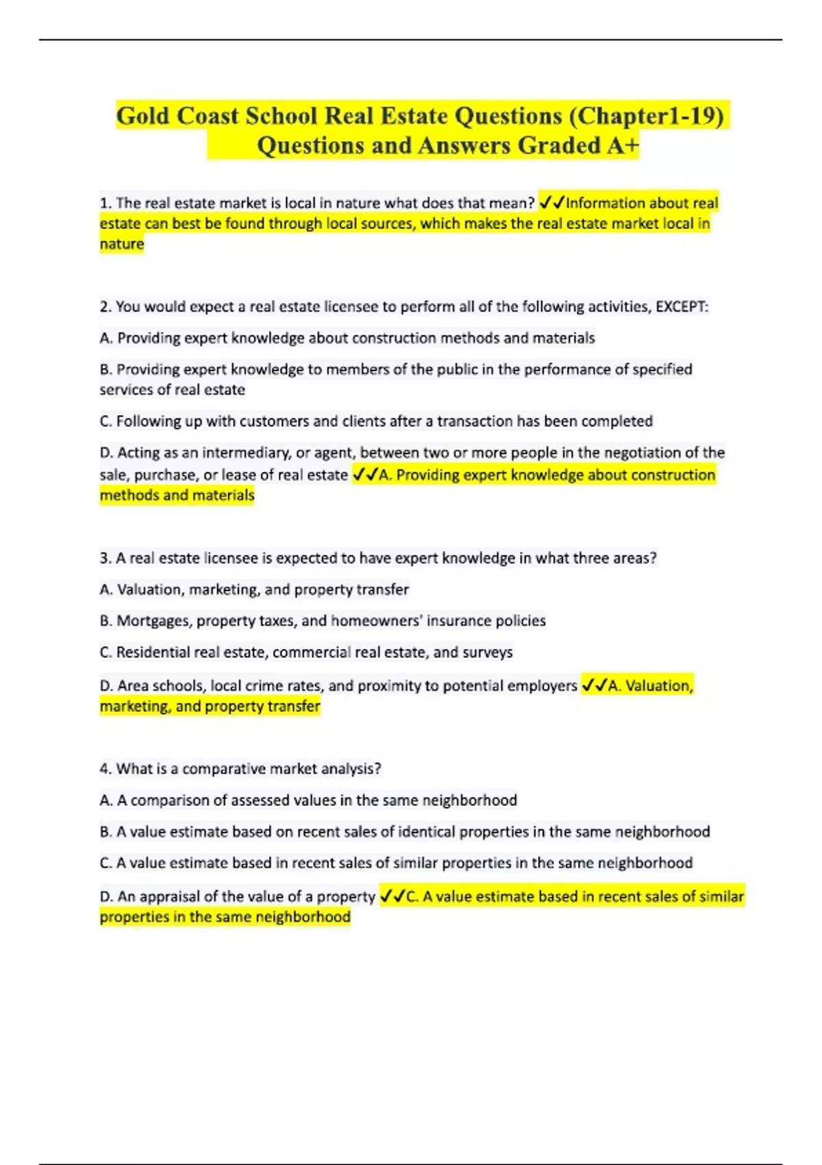 Gold Coast School Real Estate Exam – 2025 Actual Exam Questions and Correct Answers Florida License Prep