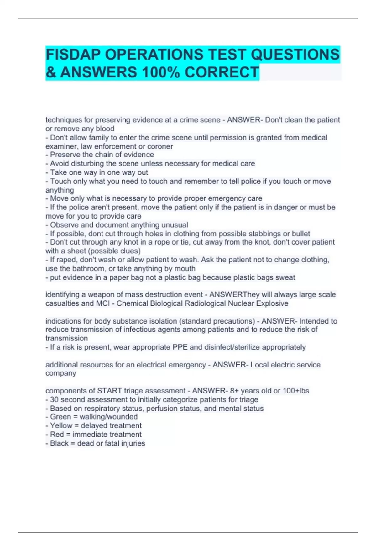 FISDAP OPERATIONS TEST QUESTIONS