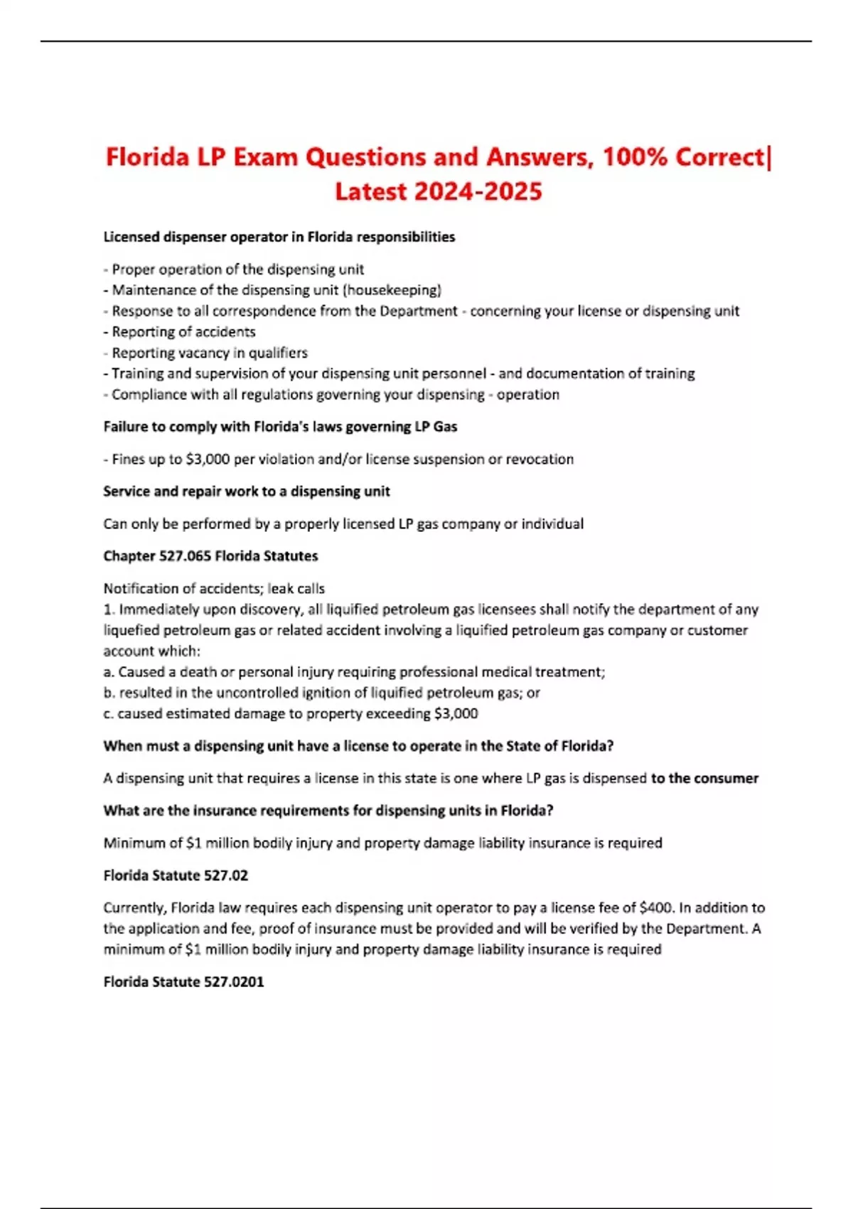 Florida LP Gas & Rules Exam Questions and Answers