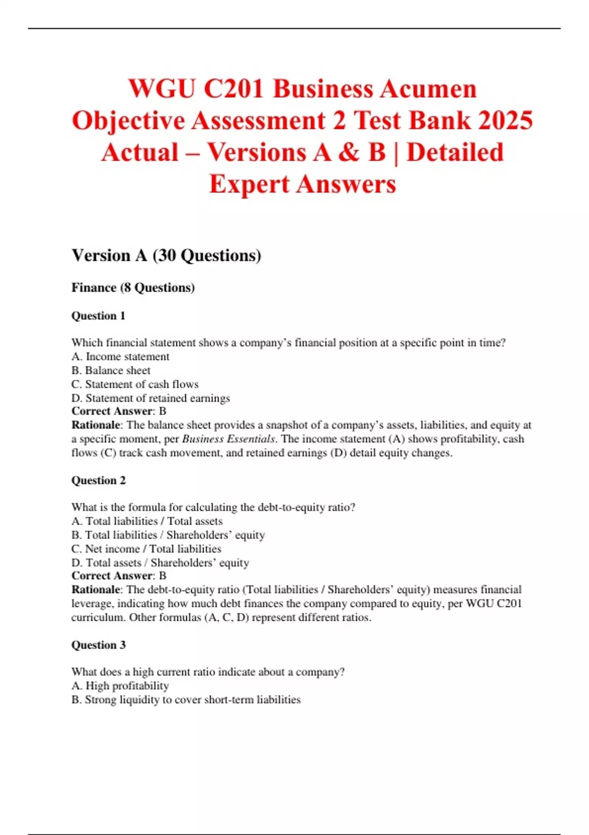 Version A (30 Questions)