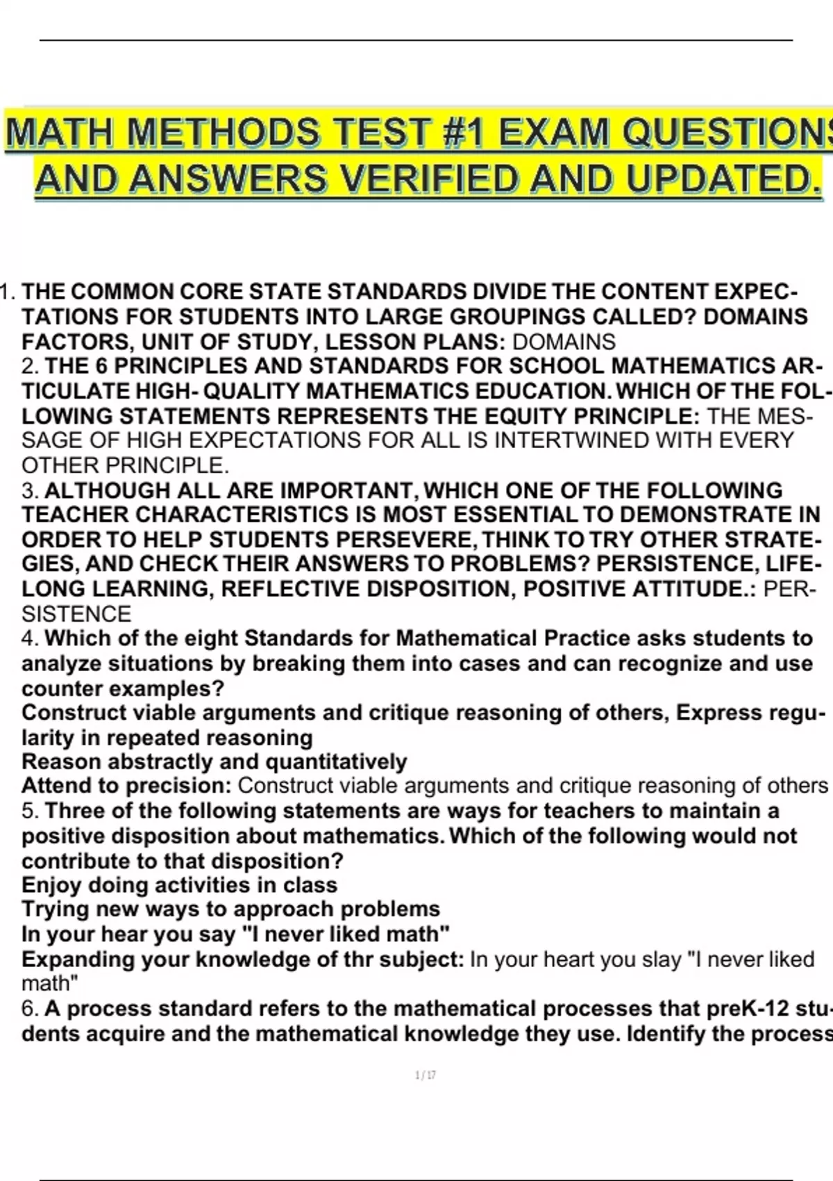 TICULATE HIGH- QUALITY MATHEMATICS EDUCATION. WHICH OF THE FOL-