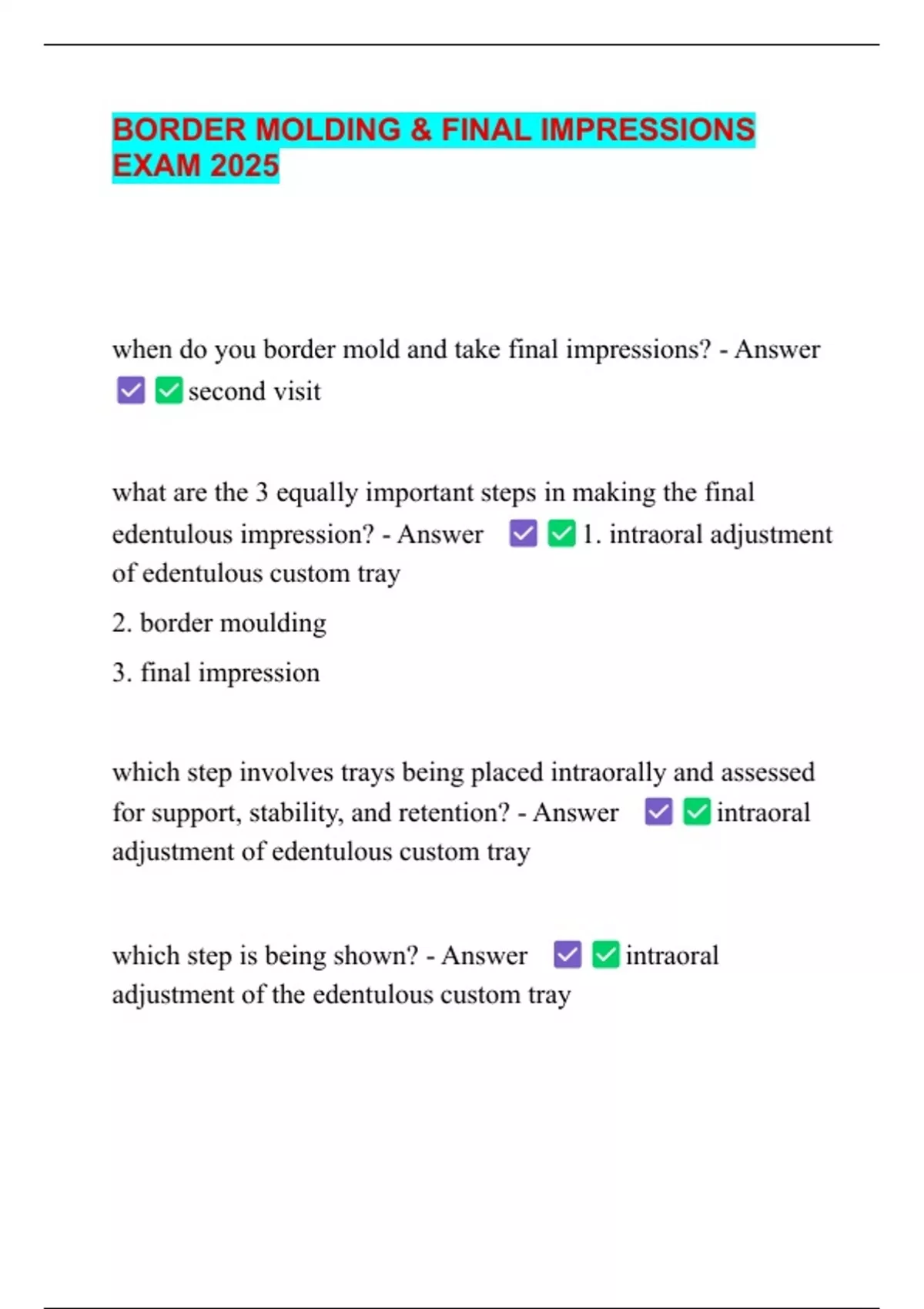 edentulous impression? - Answer 1. intraoral adjustment