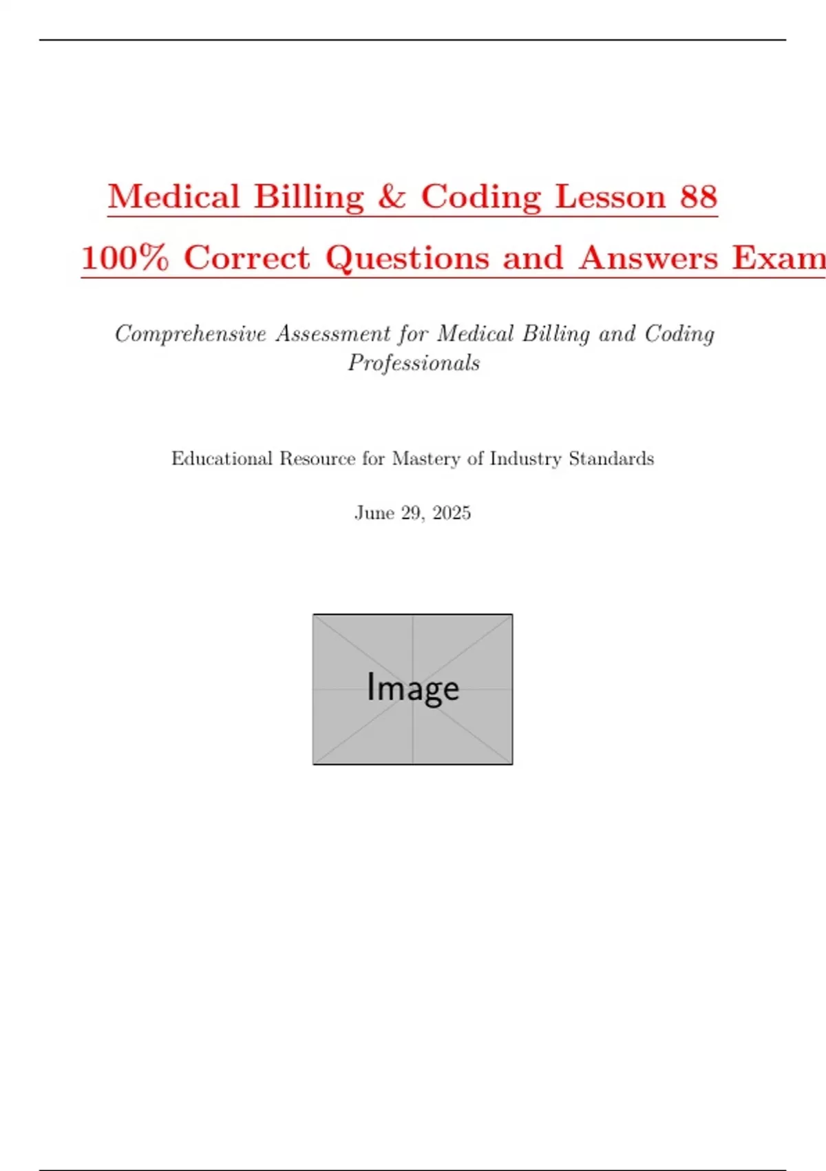 Medical Billing & Coding Lesson 88 100% Correct Questions and Answers ExamComprehensive Assessment for Medical Billing and Coding Professionals Educational Resource for Mastery of Industry Standards June 29, 2025